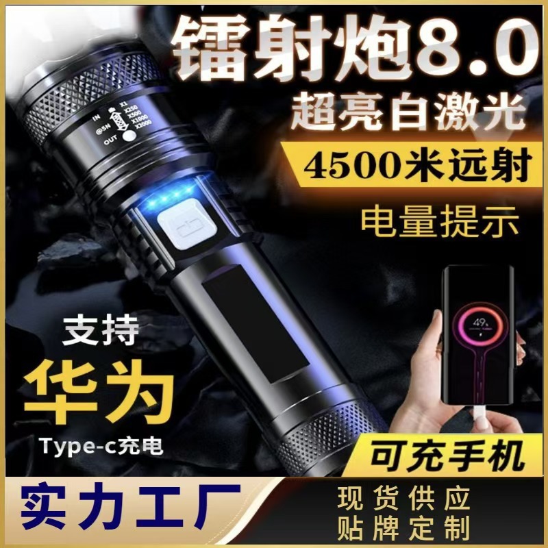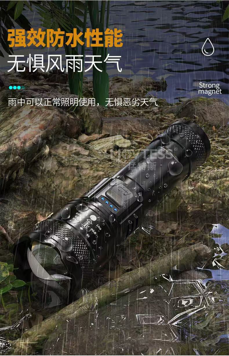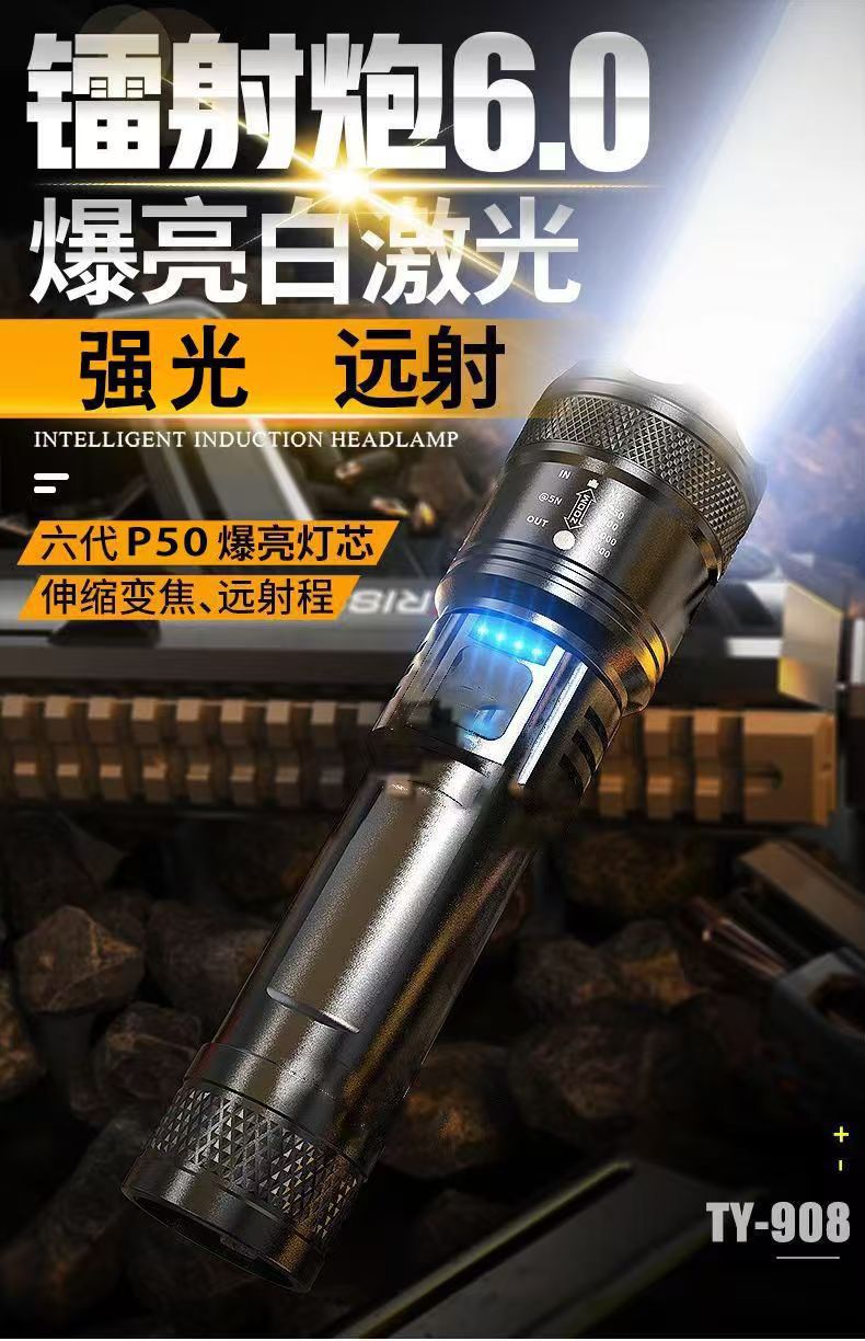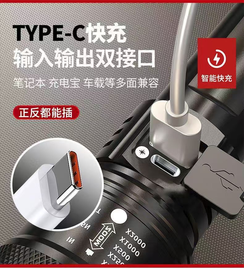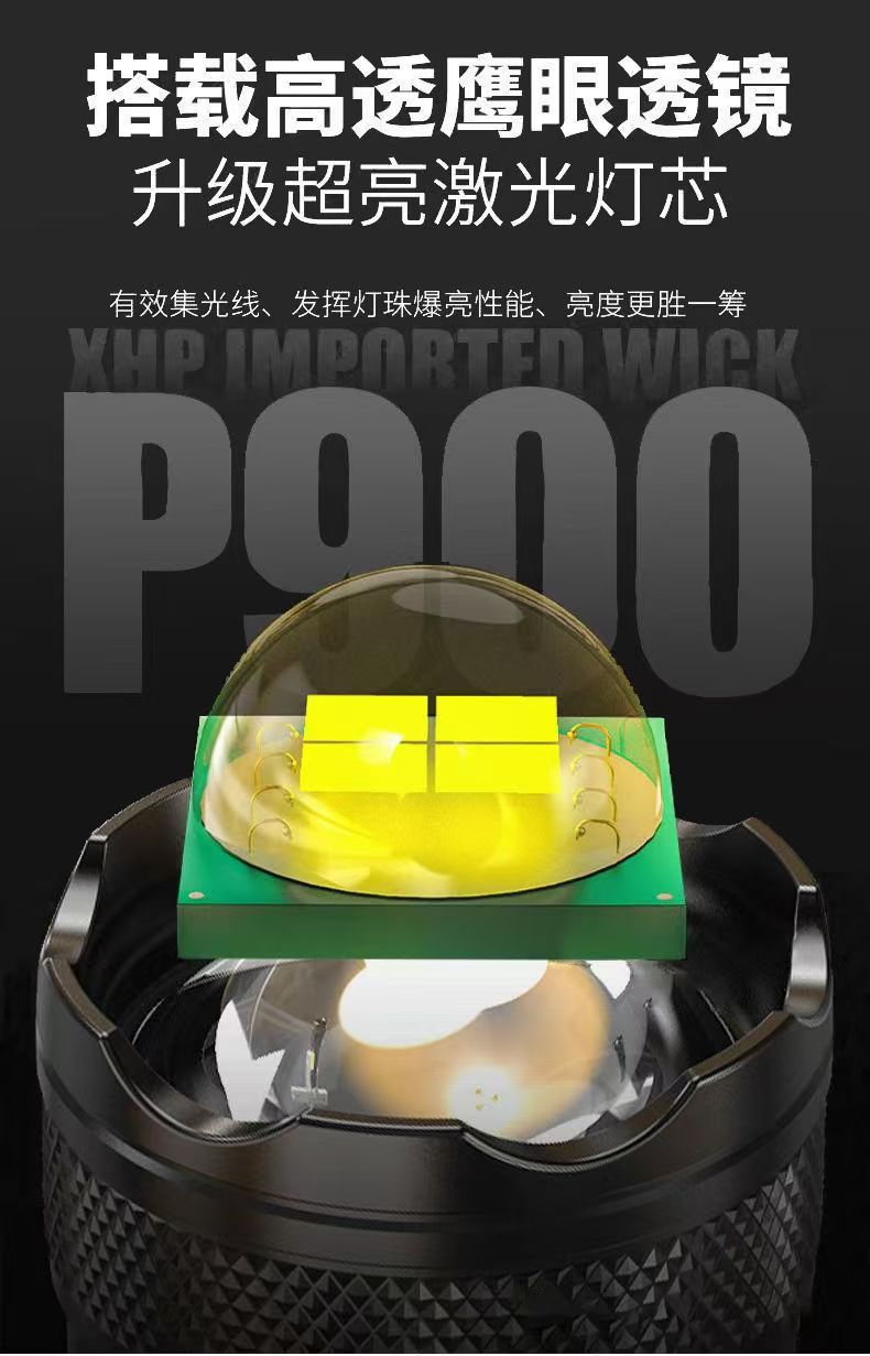 국경 간 수다쟁이 폭발 LED 손전등 강한 빛 야외 충전 USB 망원경 집중 비상 홈 손전등
