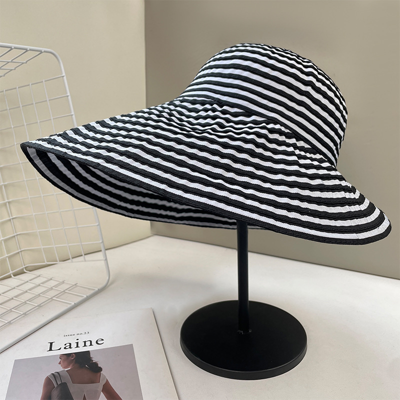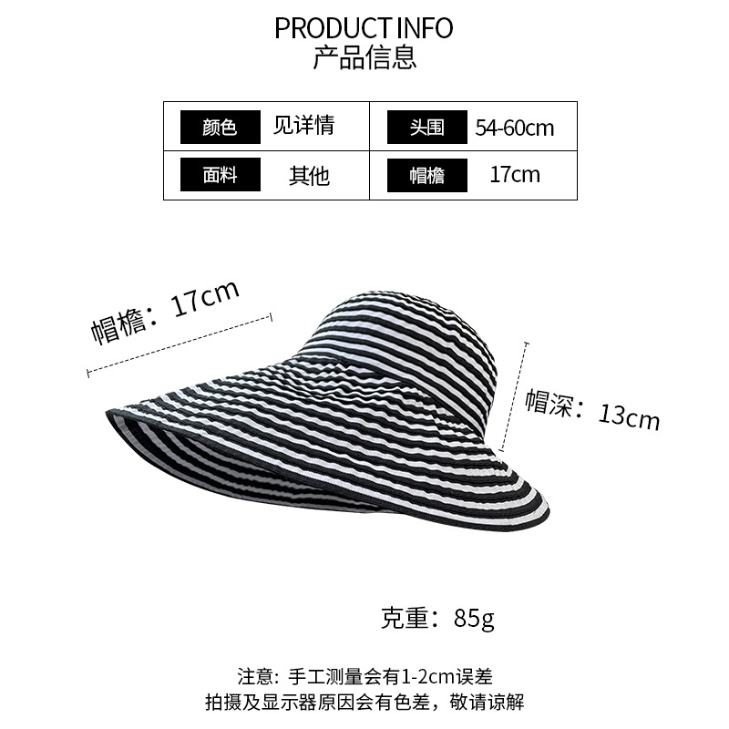 줄무늬 어부 모자 어린이 봄과 여름 길고 짧은 큰 브림 차양 선 스크린 모자 야외 등산 휴가 얼굴 작은 분지 모자