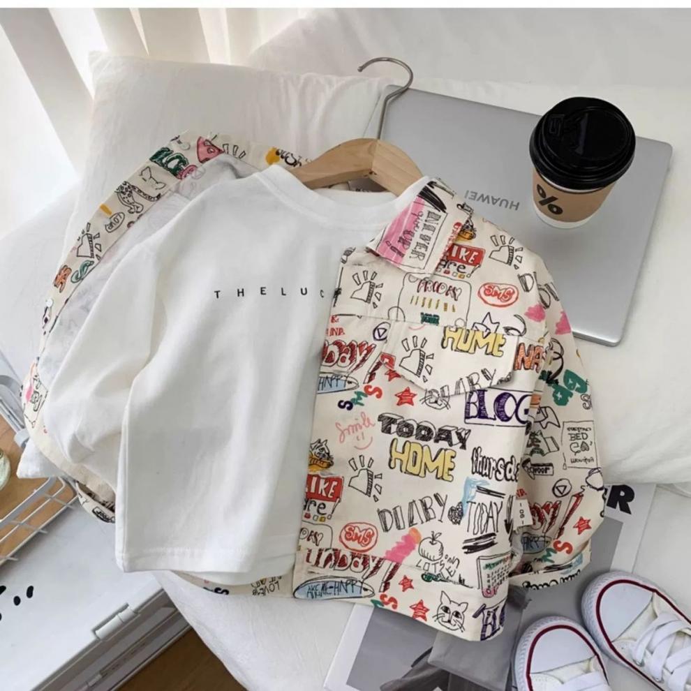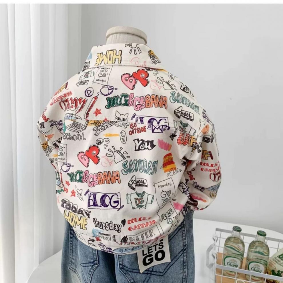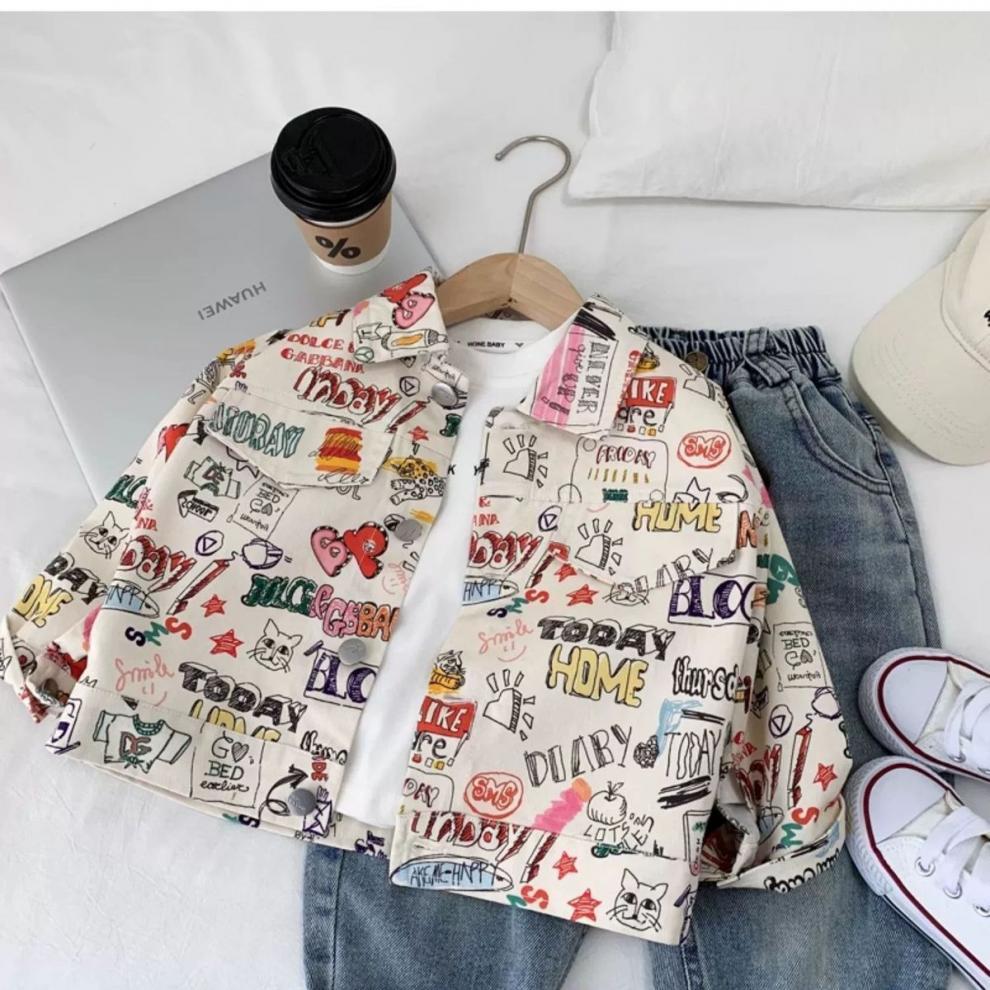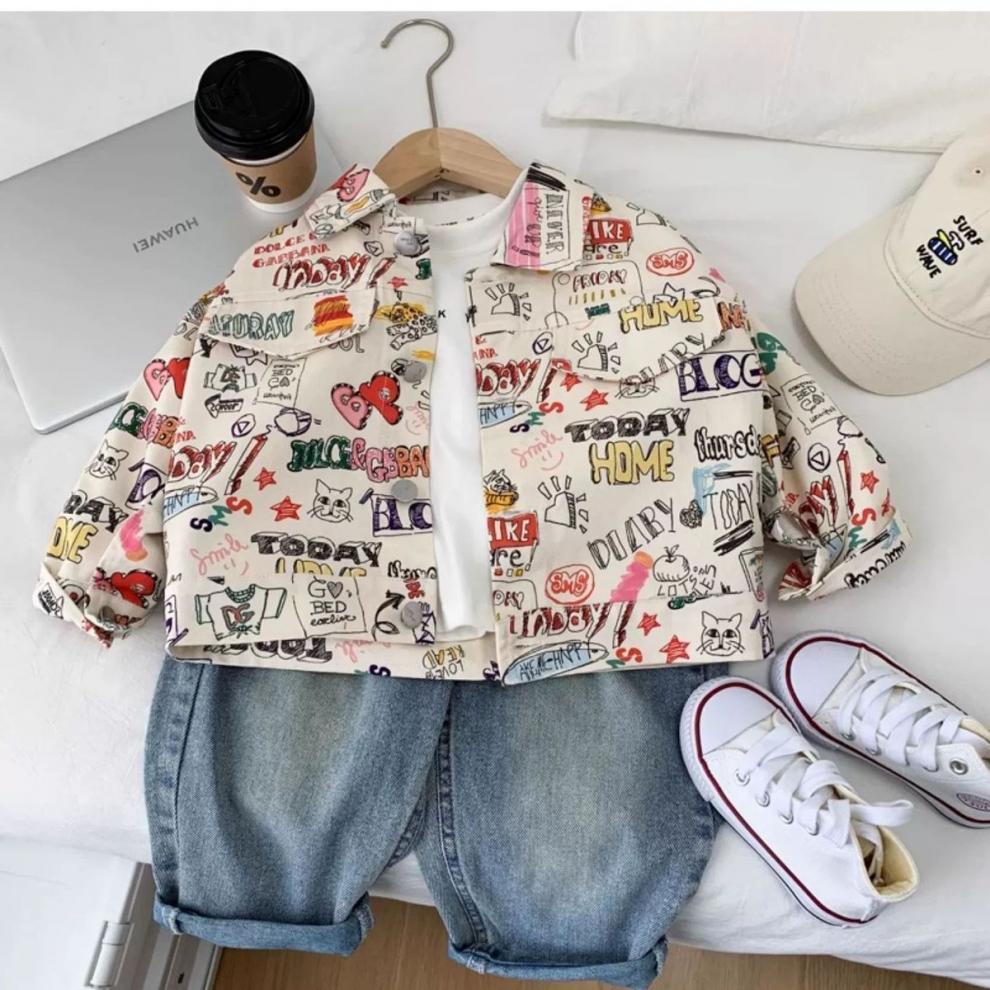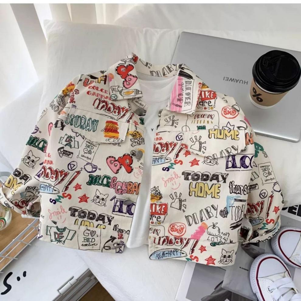 어린이 데님 코트 2024 봄 새 소년 낙서 세련된 캐주얼 재킷 유행 탑스토어 가기
