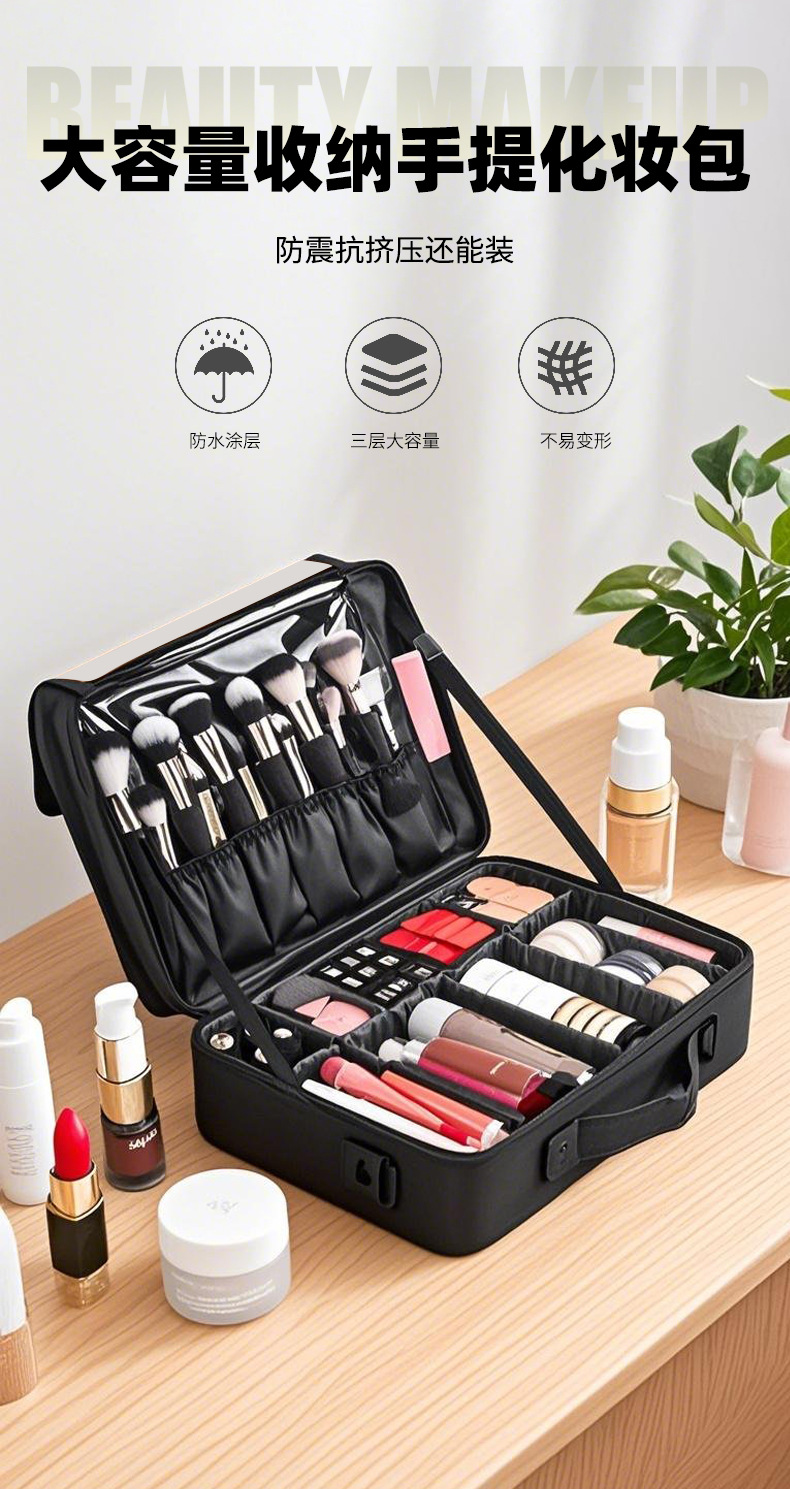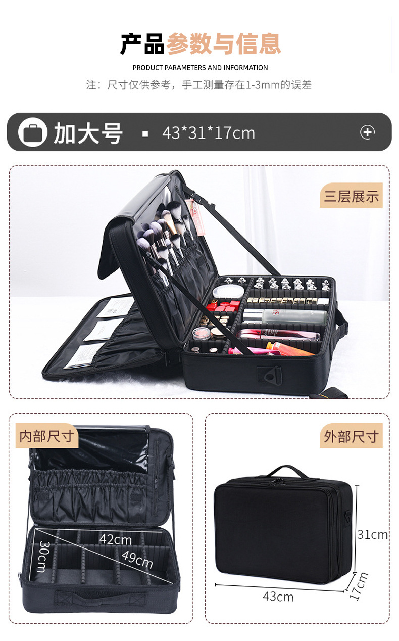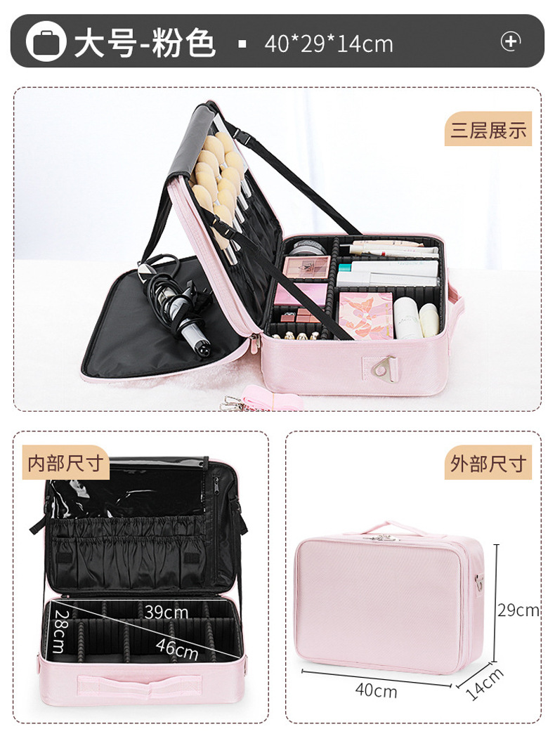 화장품 저장 상자 휴대용 대용량 전문 화장품 가방 여성의 방수 빛 휴대용 손 수 놓은 다층 보관 가방