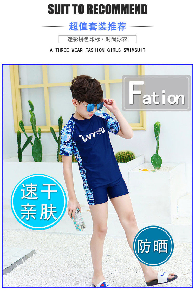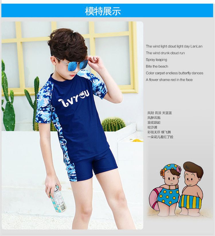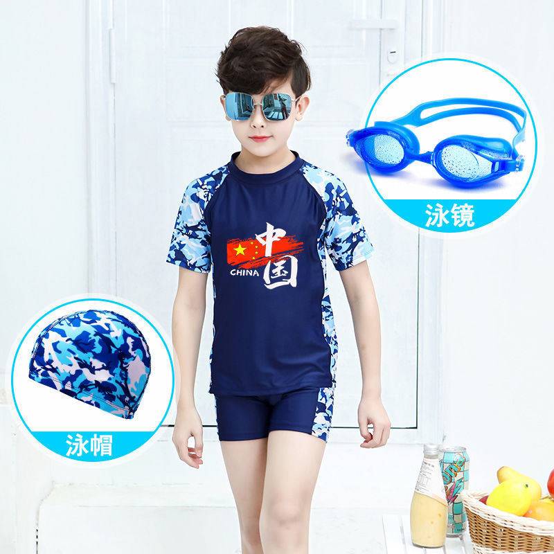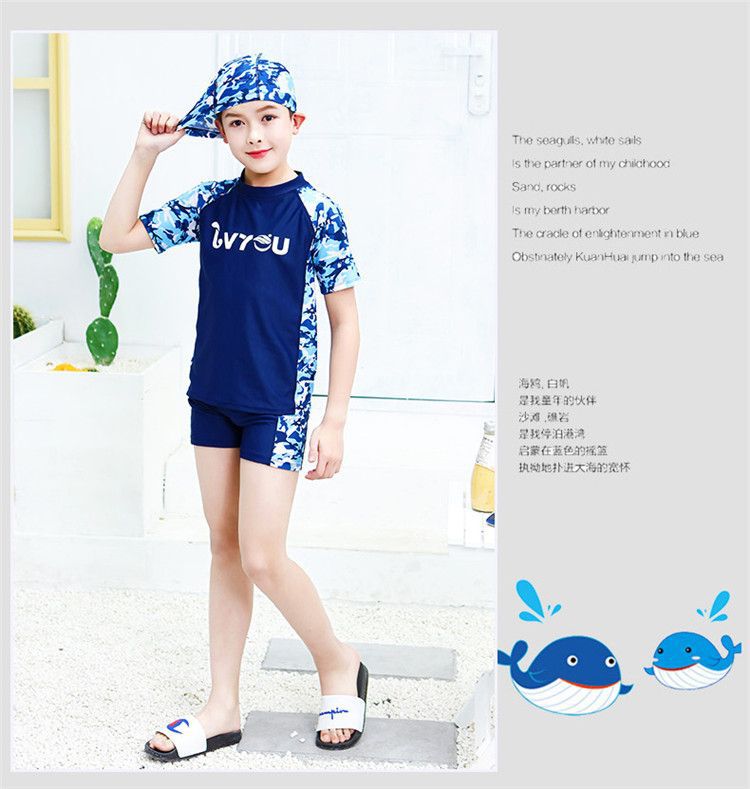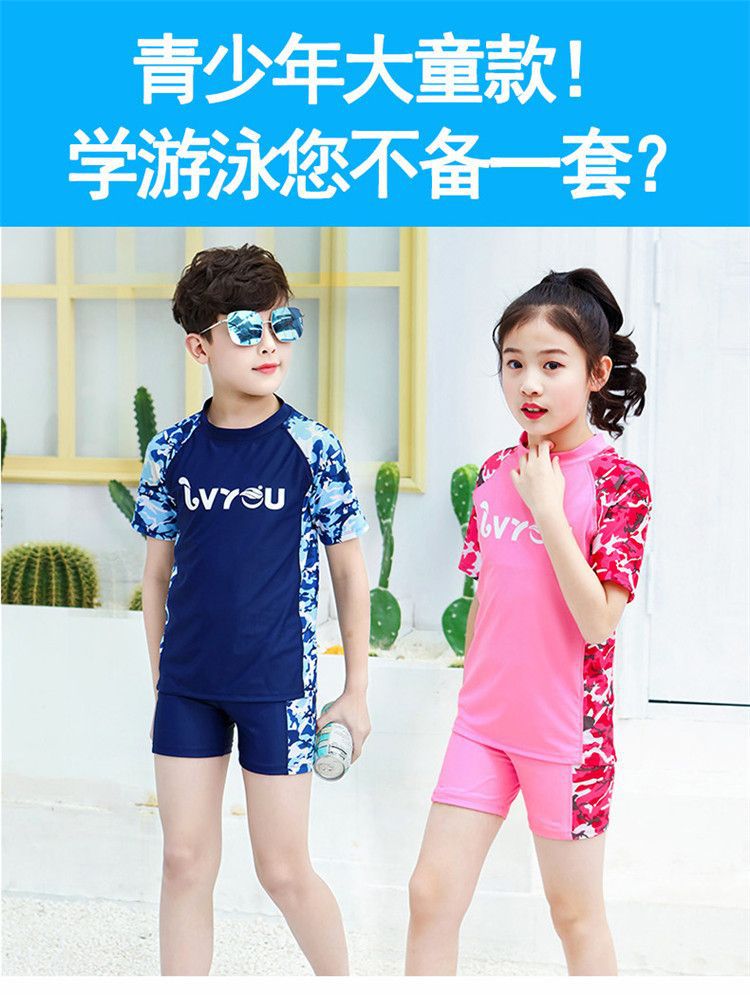 어린이 수영복 소년 소녀 중 · 대형 어린이 분할 옷 모자 태양 보호 수영복 소년 수영 트렁크 청소년 장비스토어 가기