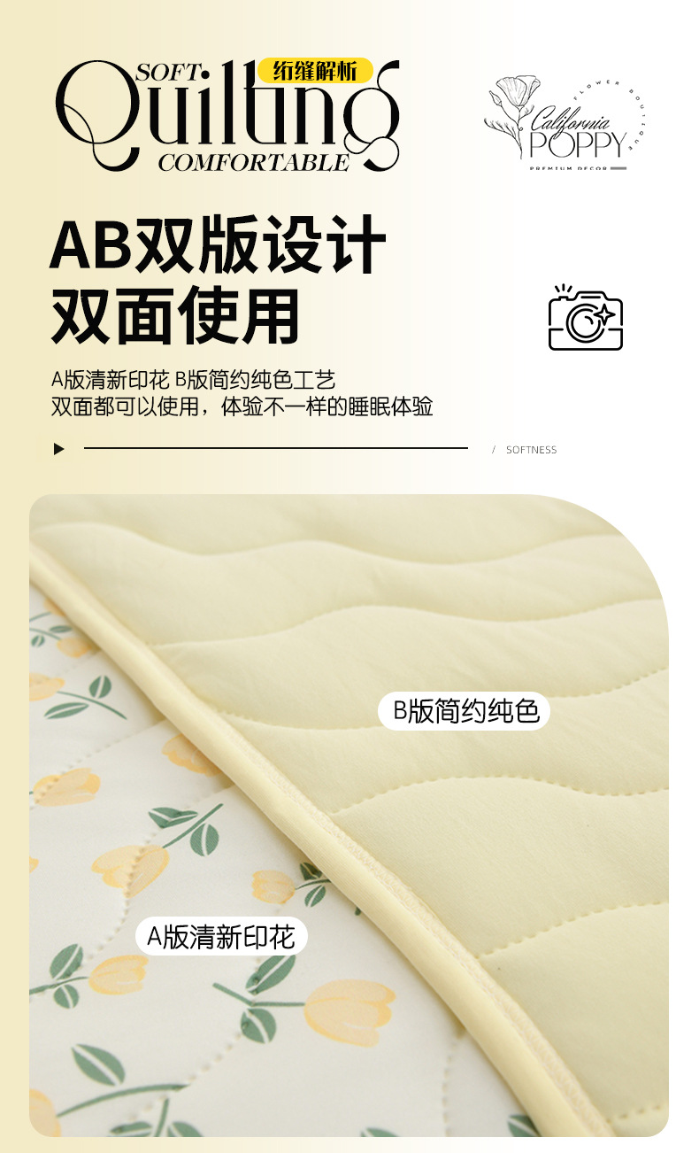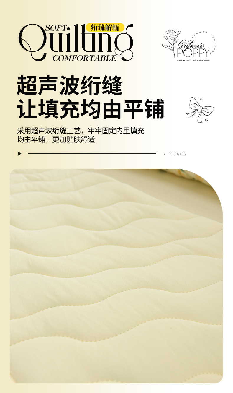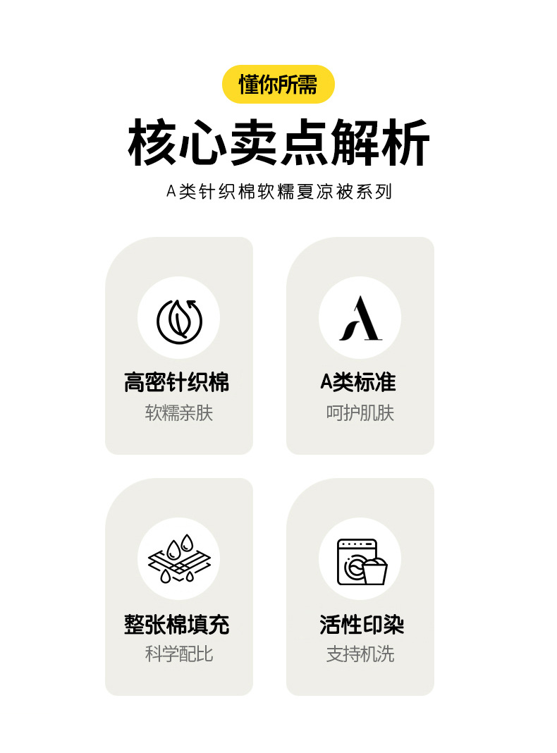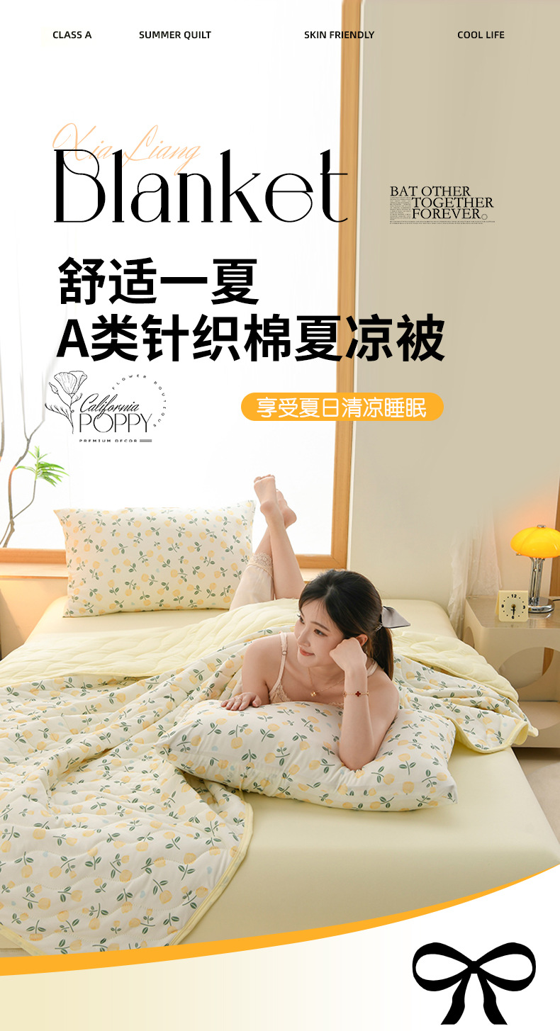 - **填充物**:多为超细纤维或天然棉絮,轻盈蓬松但保暖适中,冷气环境下保暖不闷,春秋季也可作为薄被使用。