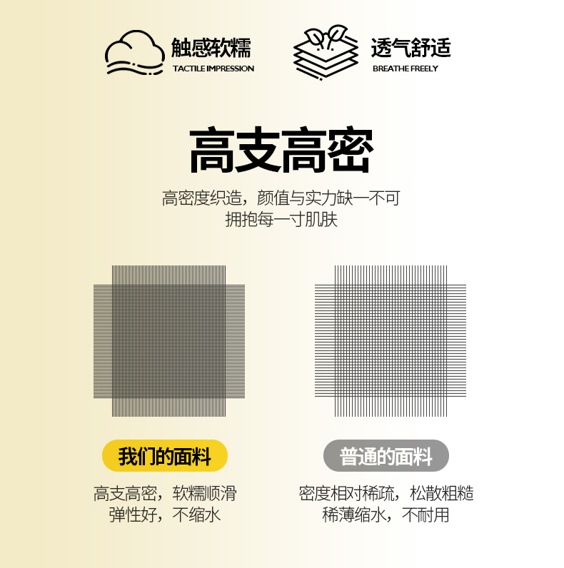 - **针织棉面料**:采用高支数纱编织,质地细腻柔软,触感如“云朵”般轻盈贴肤,吸湿透气性强,减少闷热感,尤其适合敏感肌或易出汗人群。