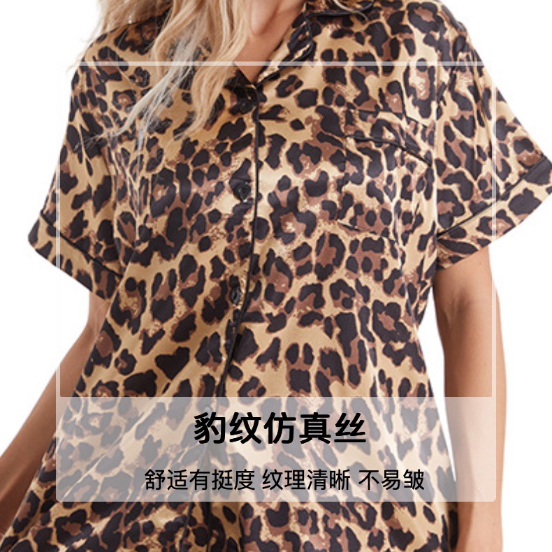 유럽 및 미국 수출용 여성용 잠옷 홈웨어 레오파드 프린트 캐주얼 세트 봄 여름 라펠 대형 반바지 시인 크로스보더 공급스토어 가기