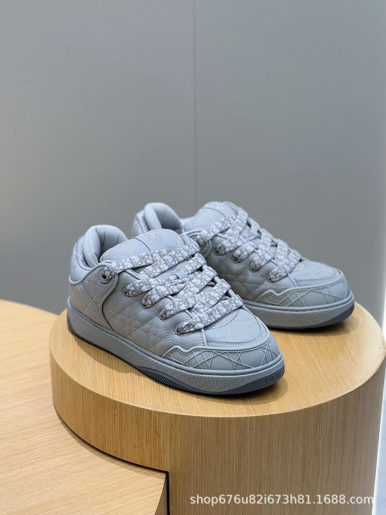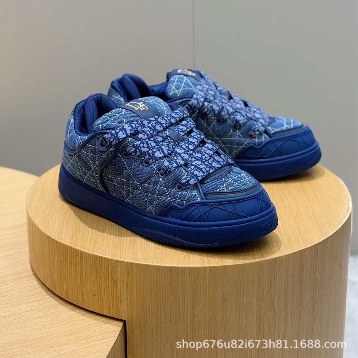 这款全新 B9S 滑板运动鞋的灵感源自滑板运动和 Dior 的高订精神。采用海军蓝色棉质粗花呢精心制作,重新演绎经典的藤格纹图案,展示粒面牛皮革细节,向 Dior 的精湛工艺致敬。加垫鞋舌和科技面料袜筒,打造理想的舒适穿着体验。设计处处可见经典细节,例如鞋跟和鞋舌的 Dior 标志、藤格纹图案的镶片,以及灵感源自 Dior 标识的侧面橡胶 Dior Charm 标志。搭配镌刻以渐变效果 Oblique 印花的橡胶鞋底更显精致,可为各式造型增添高订气质
