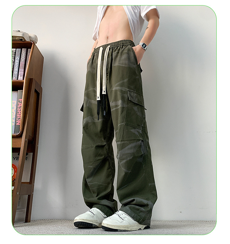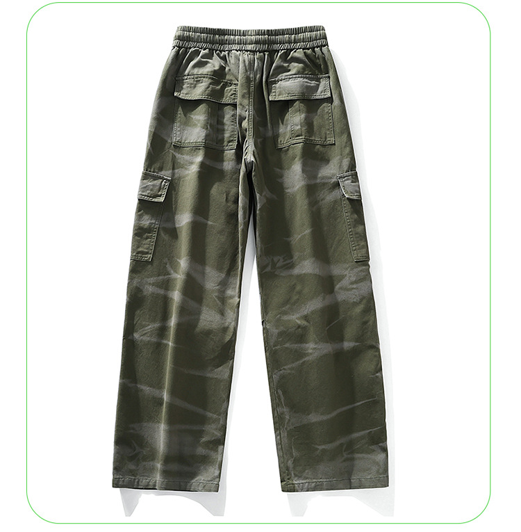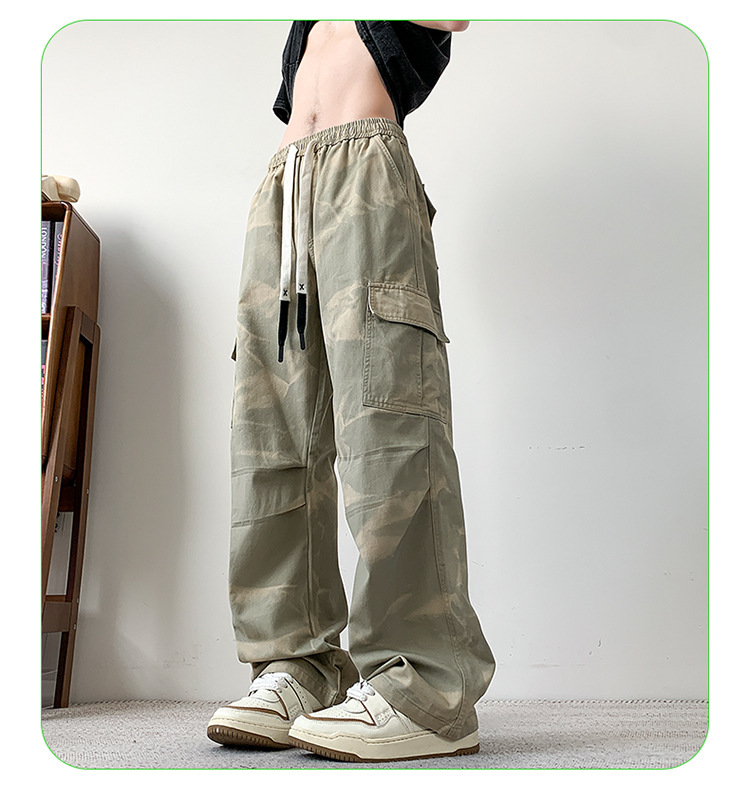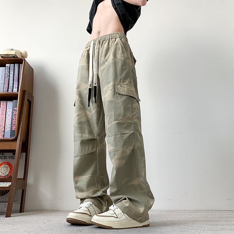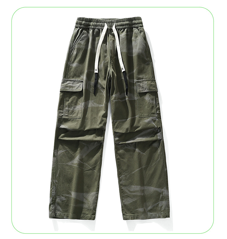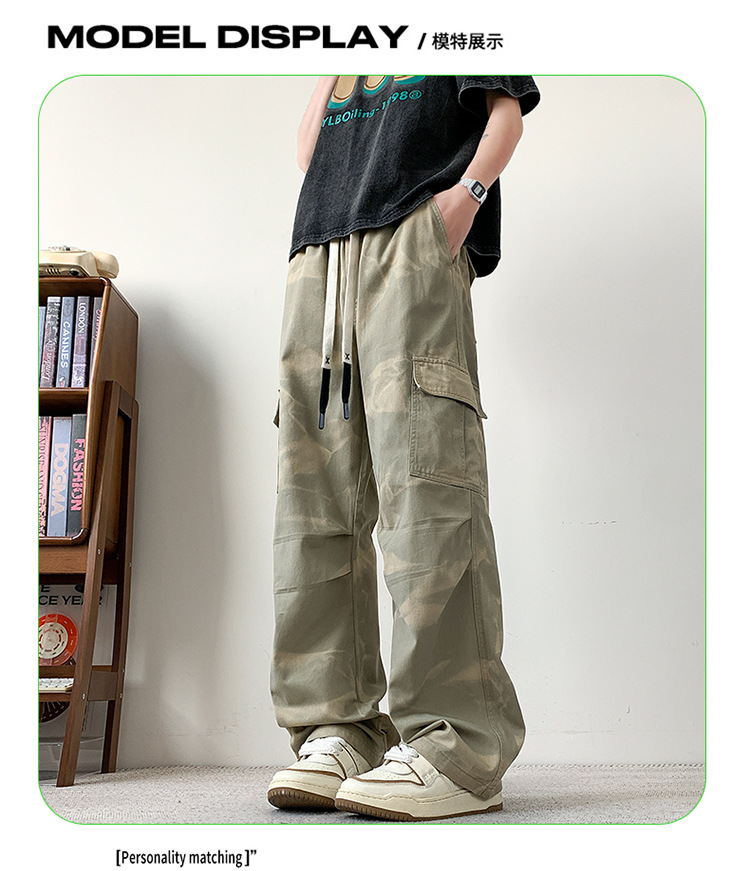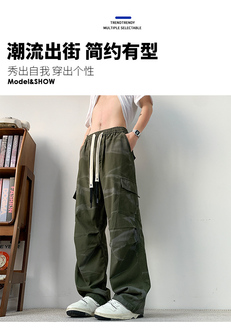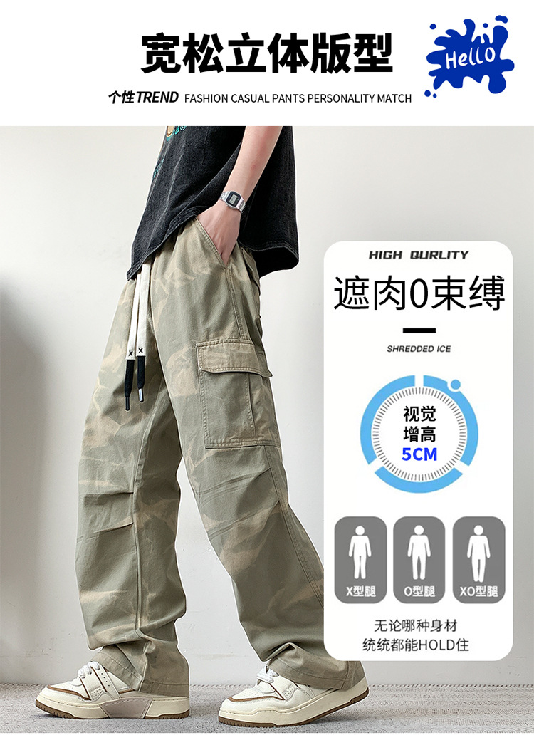 봄과 여름 2025 새로운 Ins 홍콩 스타일 플러스 사이즈 캐주얼 바지 남성용 느슨한 지방 작업 위장 면 바지스토어 가기