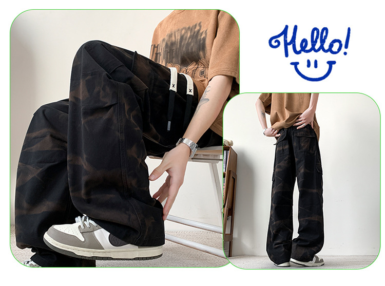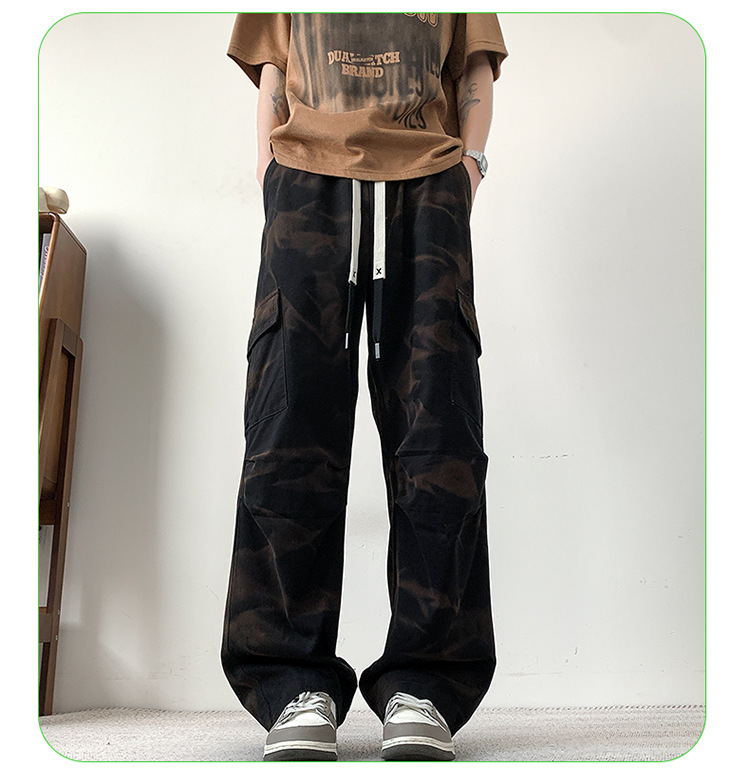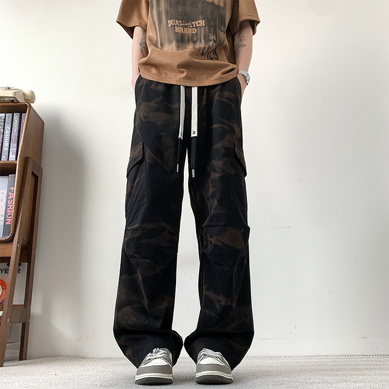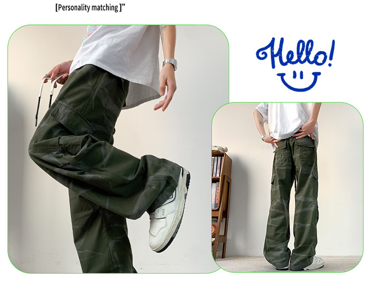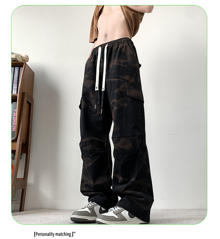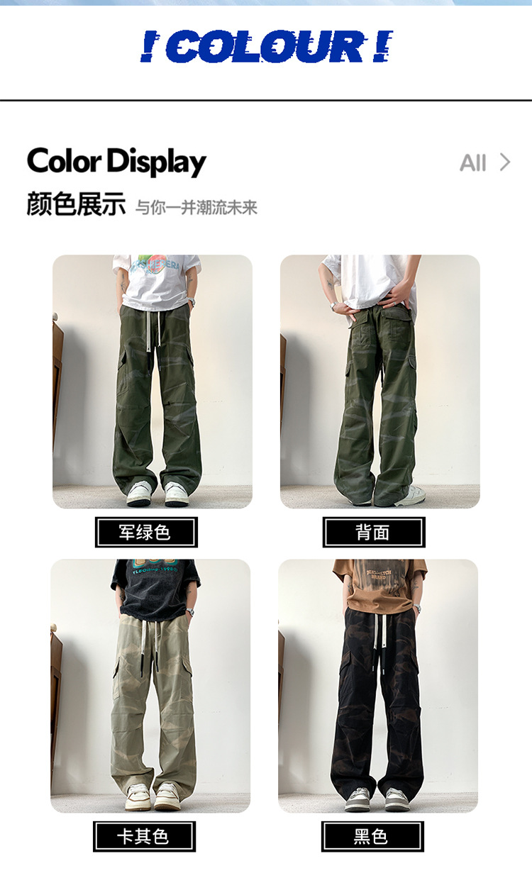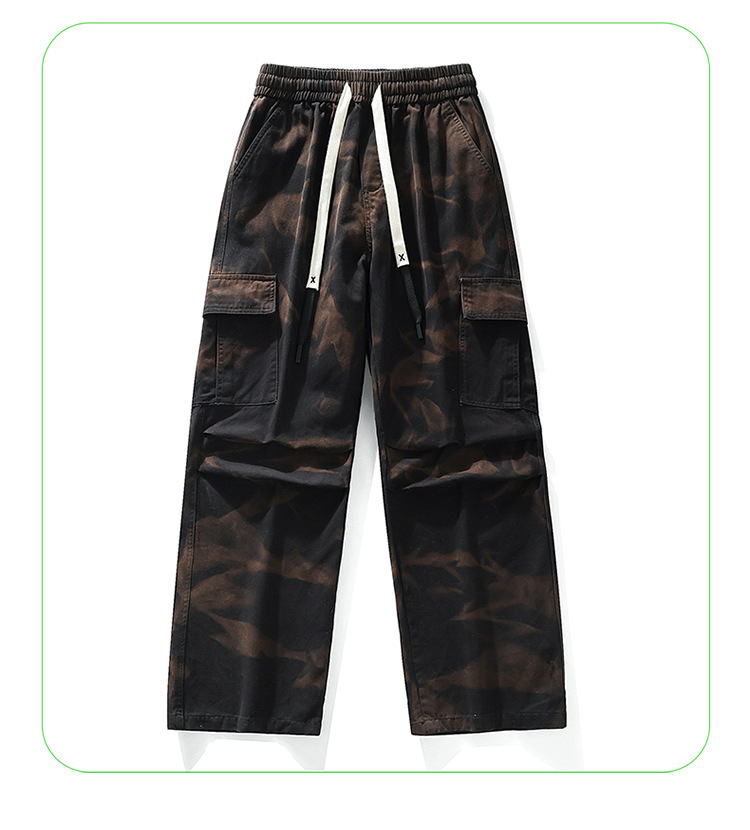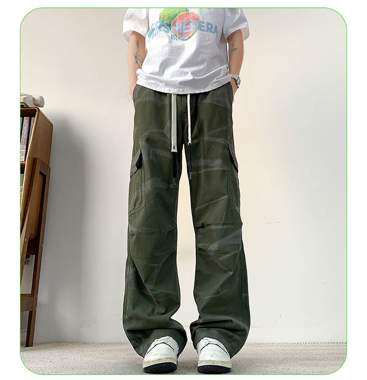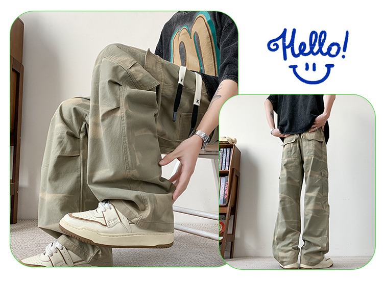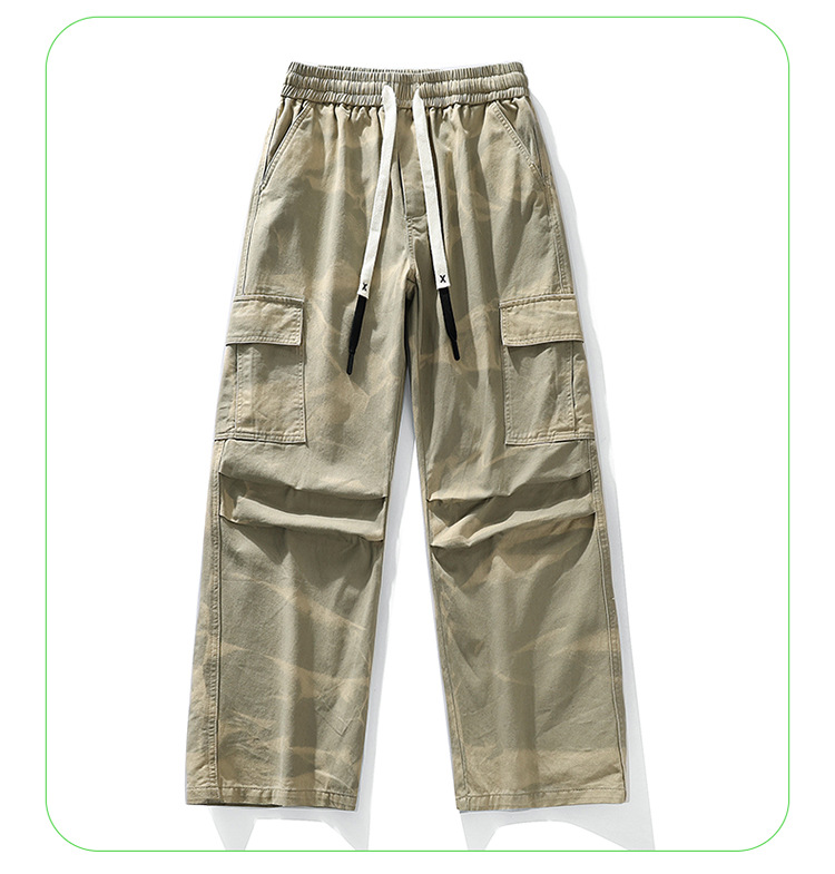 봄과 여름 2025 새로운 Ins 홍콩 스타일 플러스 사이즈 캐주얼 바지 남성용 느슨한 지방 작업 위장 면 바지스토어 가기