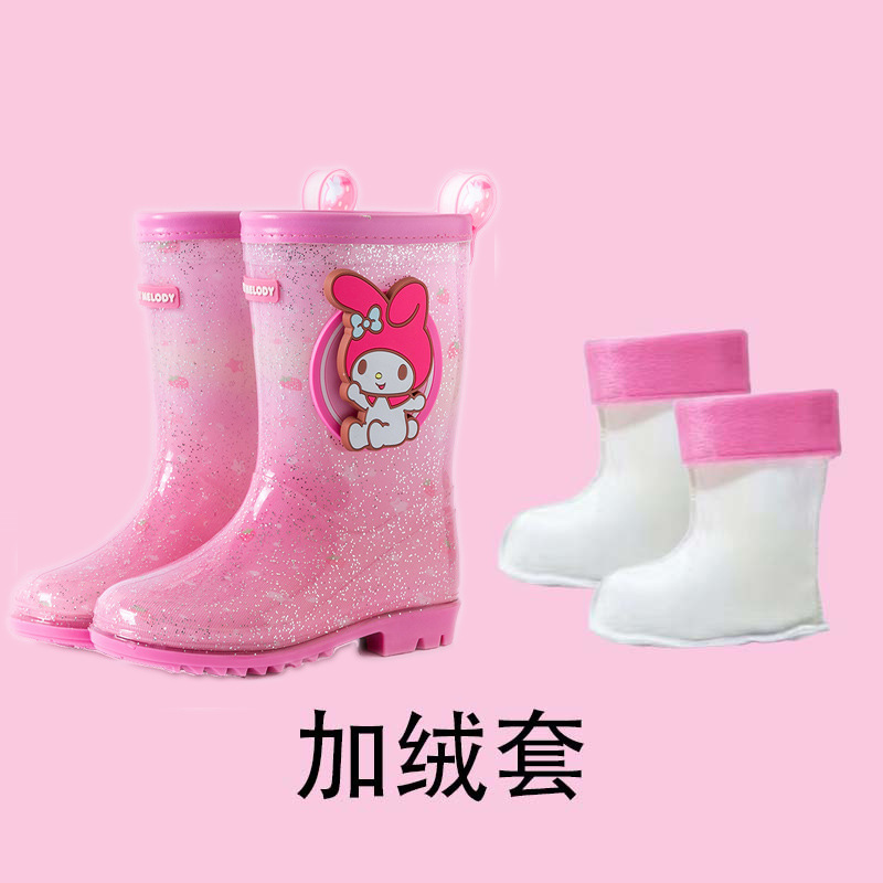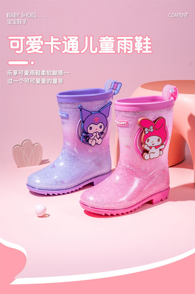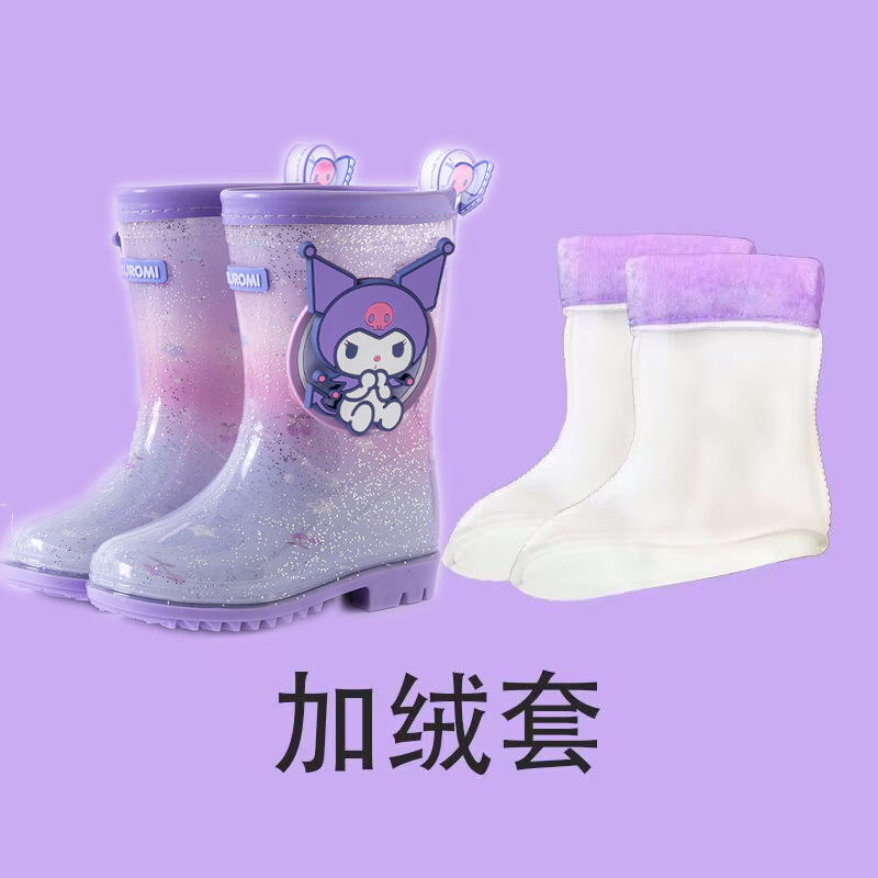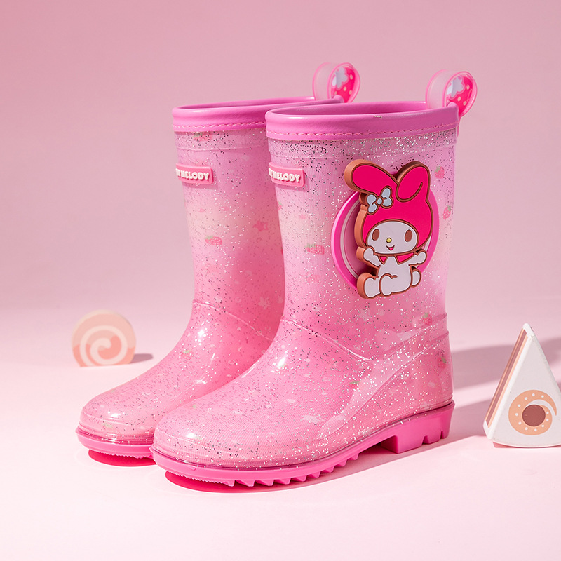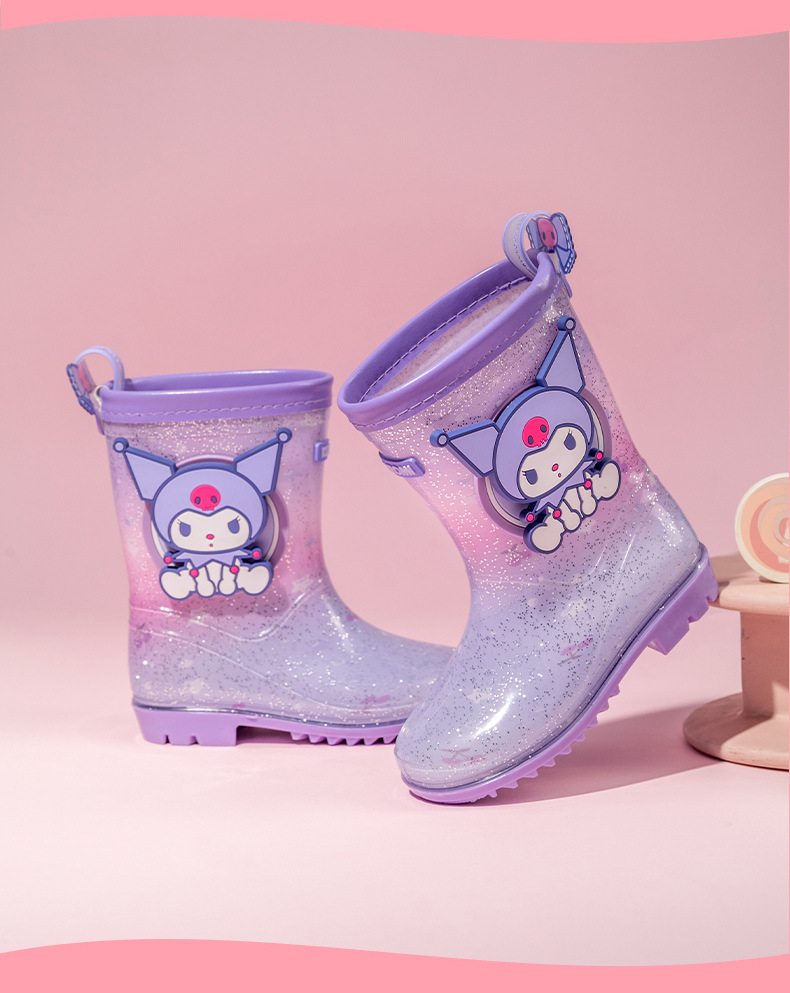 Sanrio Kulomier 어린이 비 신발 국경 여아 장화 아기 안티 슬립 걸스 크리스탈 신발 초등학교 학생 고무 신발스토어 가기