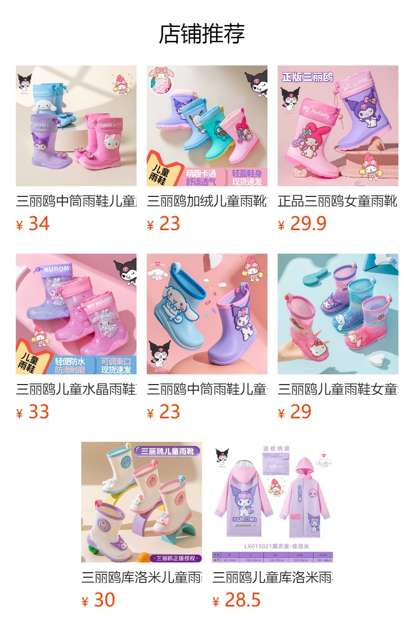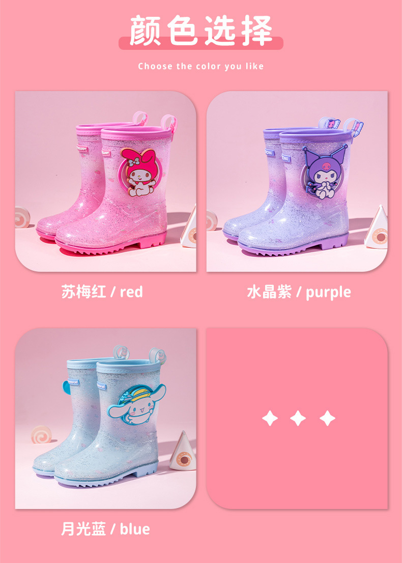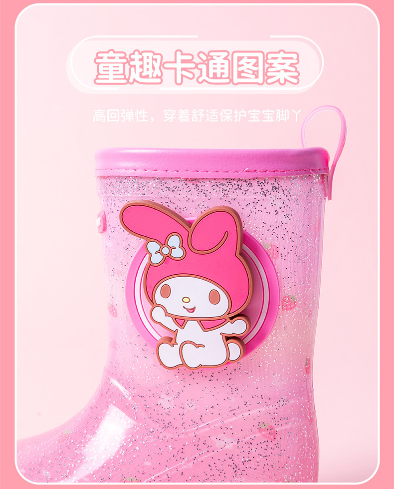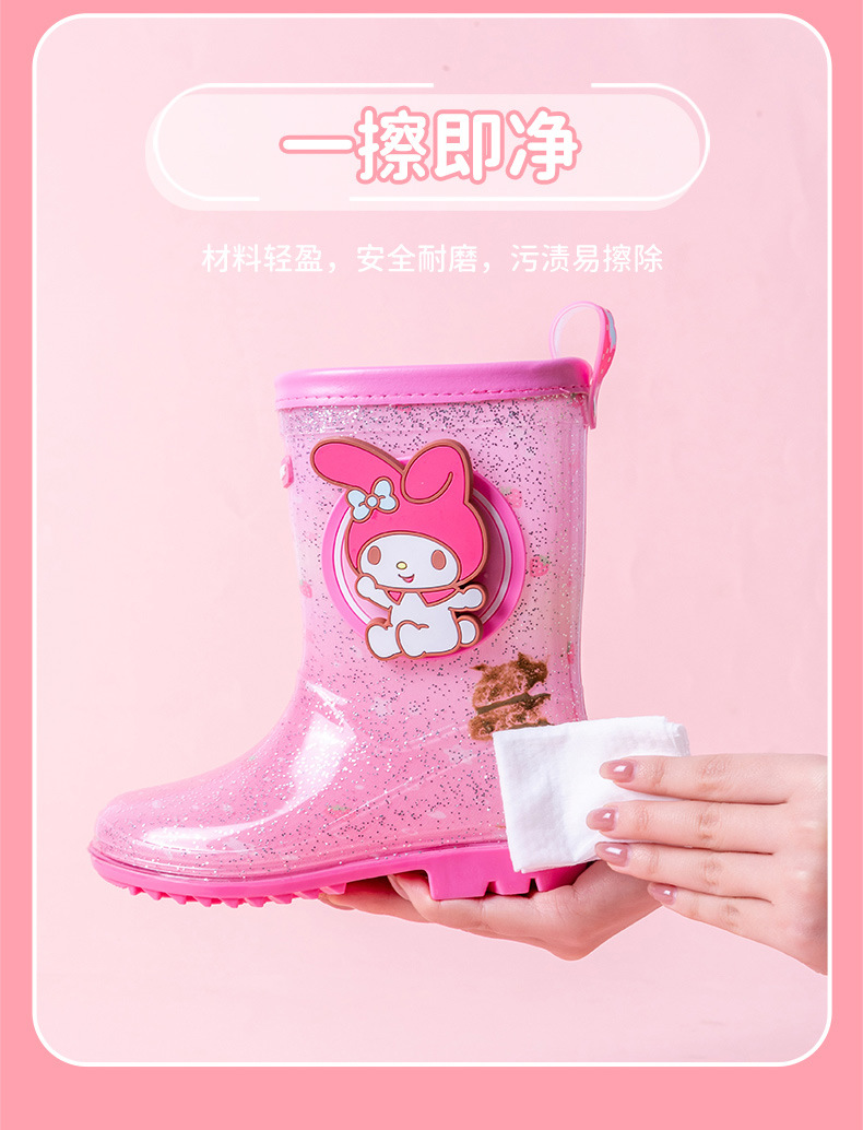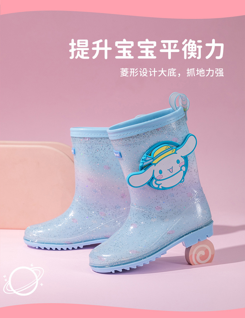 Sanrio Kulomier 어린이 비 신발 국경 여아 장화 아기 안티 슬립 걸스 크리스탈 신발 초등학교 학생 고무 신발스토어 가기