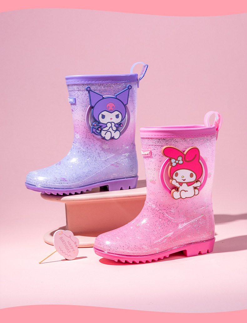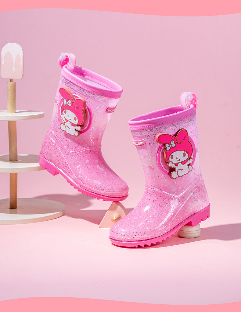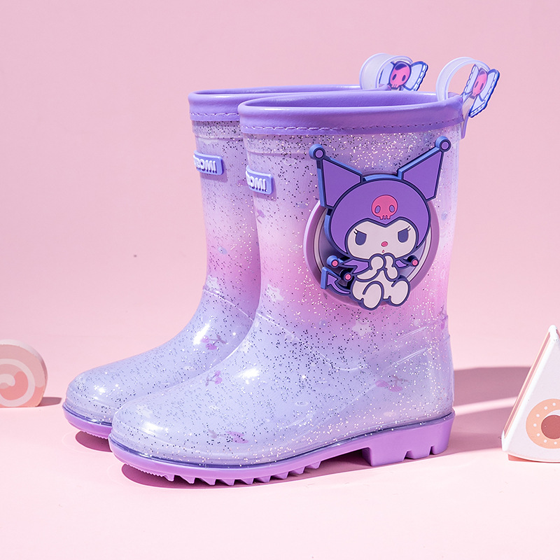 Sanrio Kulomier 어린이 비 신발 국경 여아 장화 아기 안티 슬립 걸스 크리스탈 신발 초등학교 학생 고무 신발