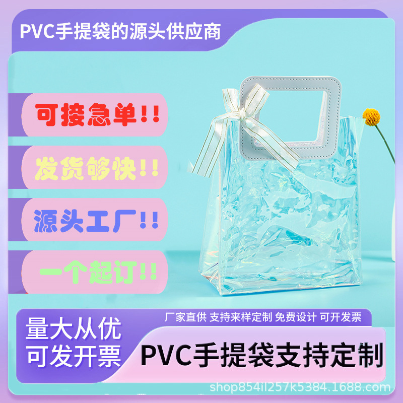맞춤형 PVC 핸드백, 고급 투명 기념품 가방, 레이저 핸드백, 메이크업 전시회 선물