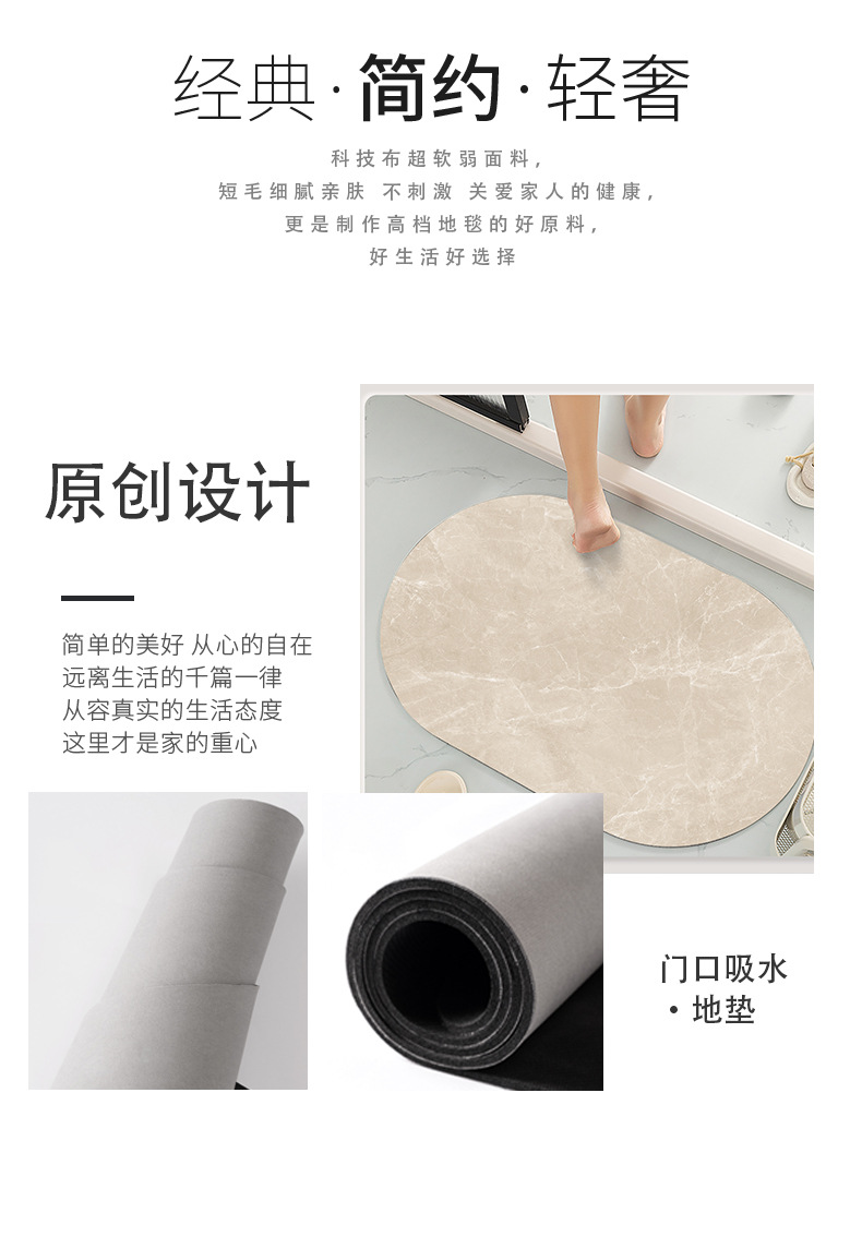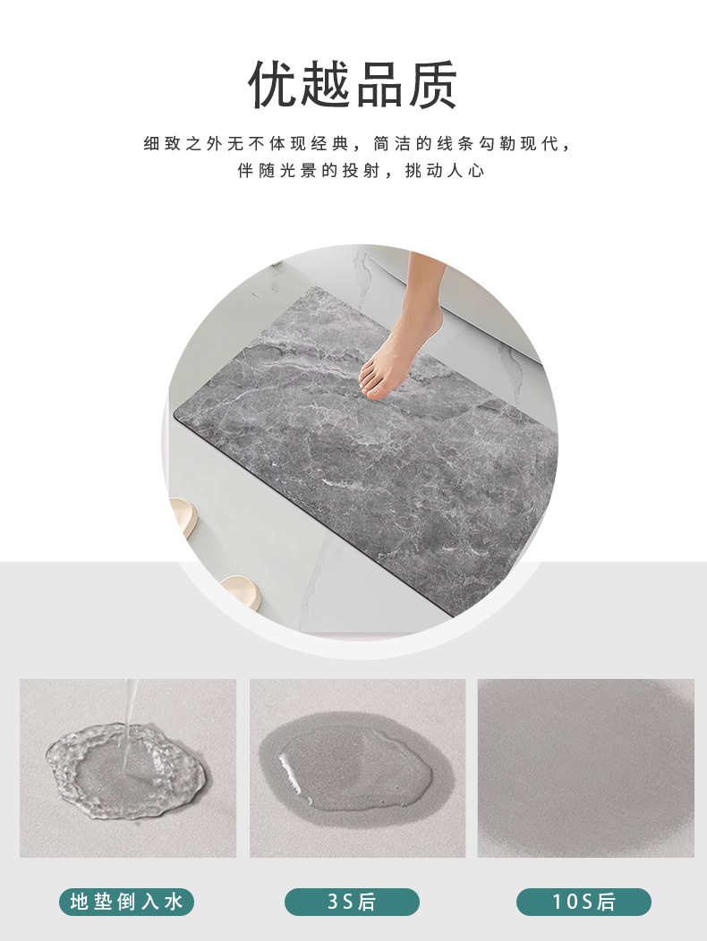 대리석 Diatom 진흙 바닥 매트 흡수성 빠른 건조 욕실 바닥 매트 화장실 문 미끄럼 방지 매트 먼지 방지 내마모성 발 매트