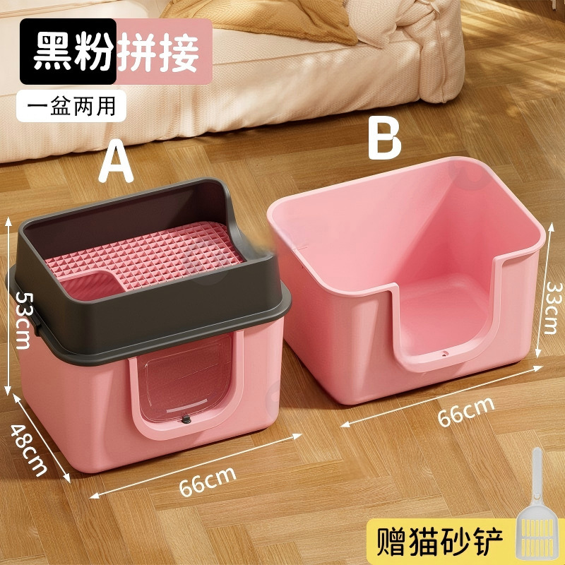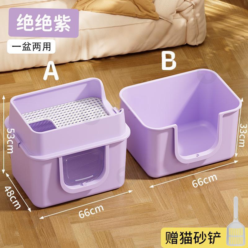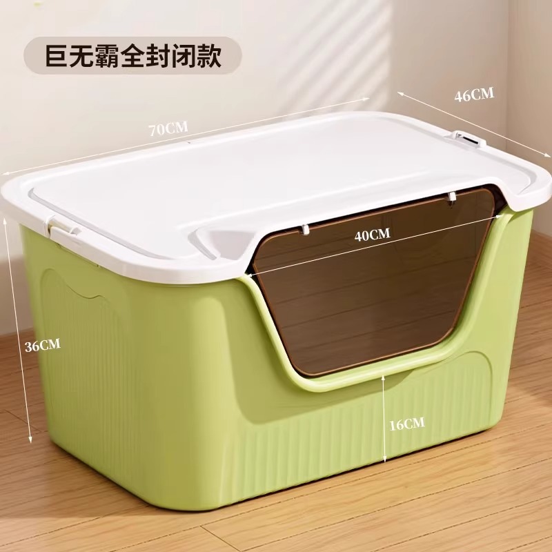 초대형 두꺼운 고양이 쓰레기 상자, 거대한 비말 방지 완전 개방형 반 밀폐형 메인쿤 고양이 쓰레기 상자, 초대형 고양이 쓰레기 상자