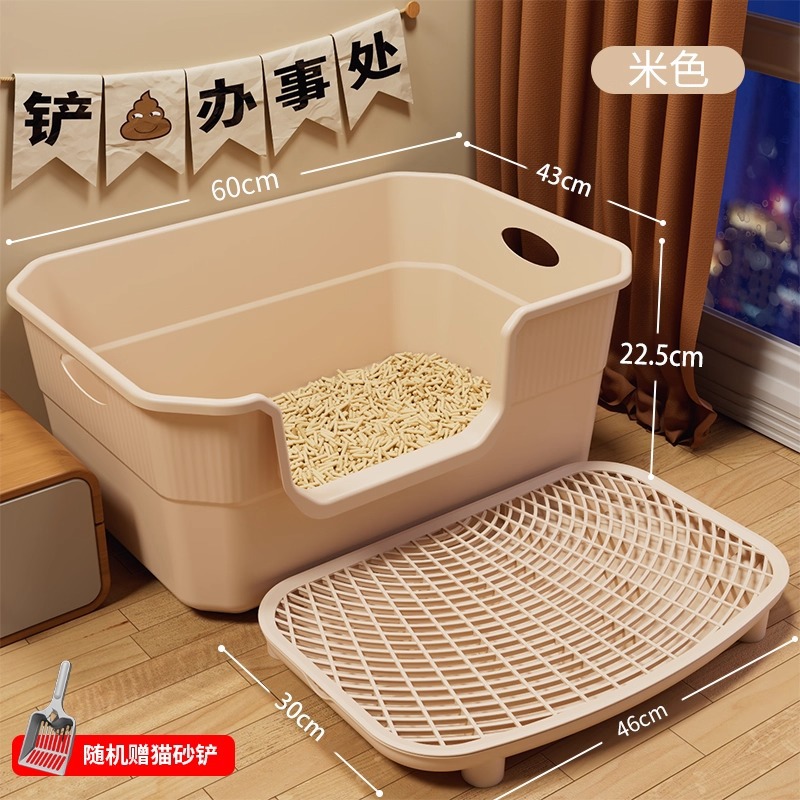 • 대형 고양이 배변 상자 [베이지색] 삽 포함