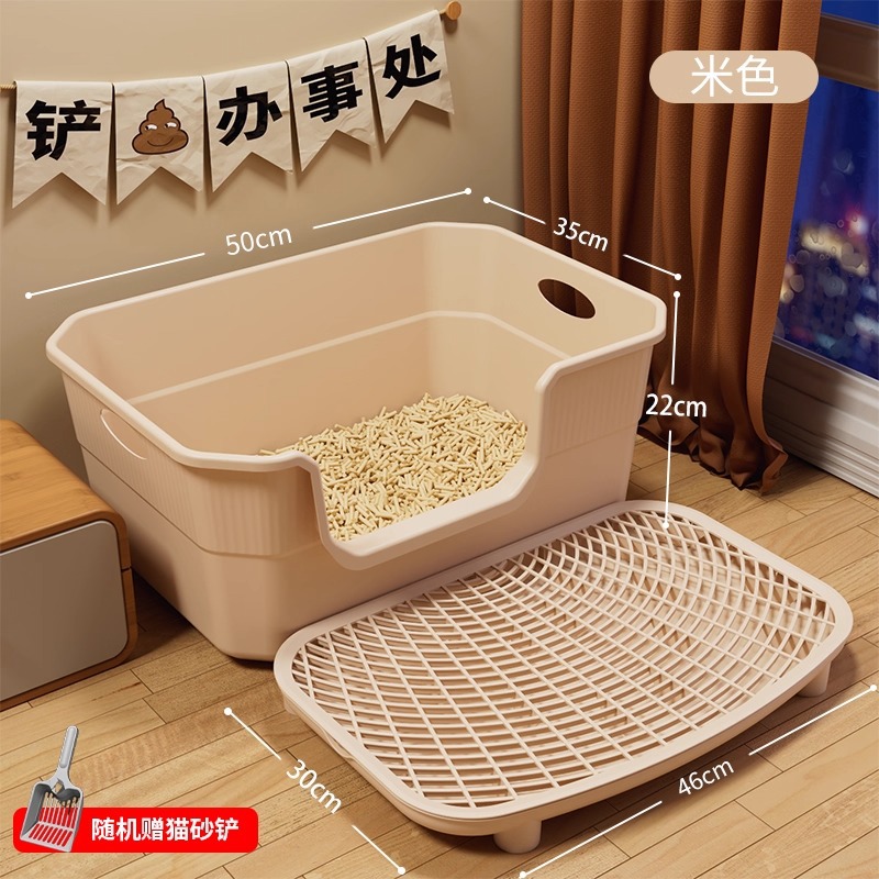 • 대형 고양이 배변 상자(페달 포함) [베이지색] 삽 포함