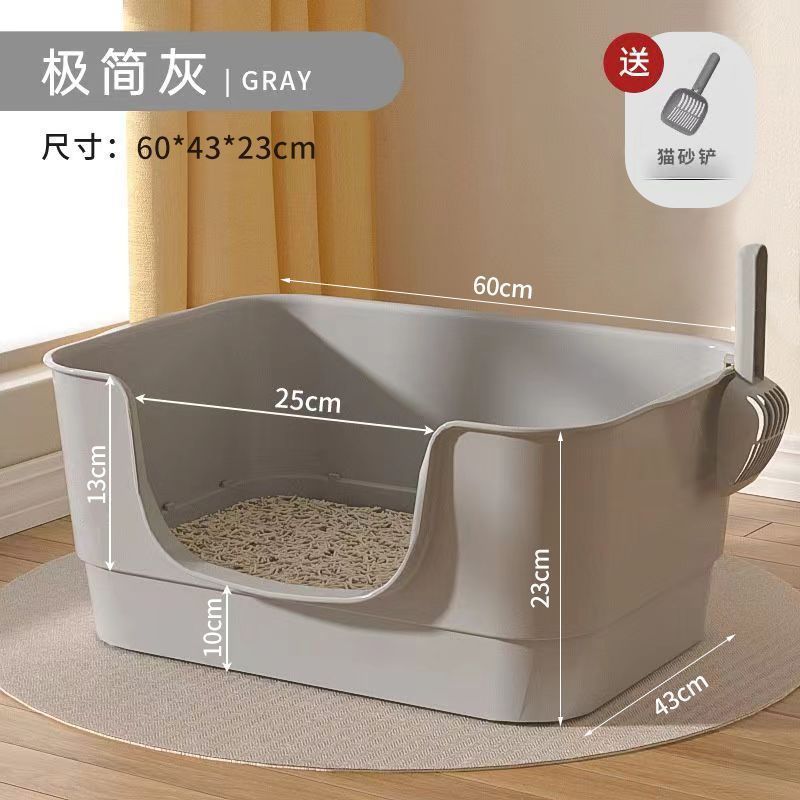• 손잡이가 있는 고양이 배변 상자 [회색 42cm] + 고양이 배변 주걱