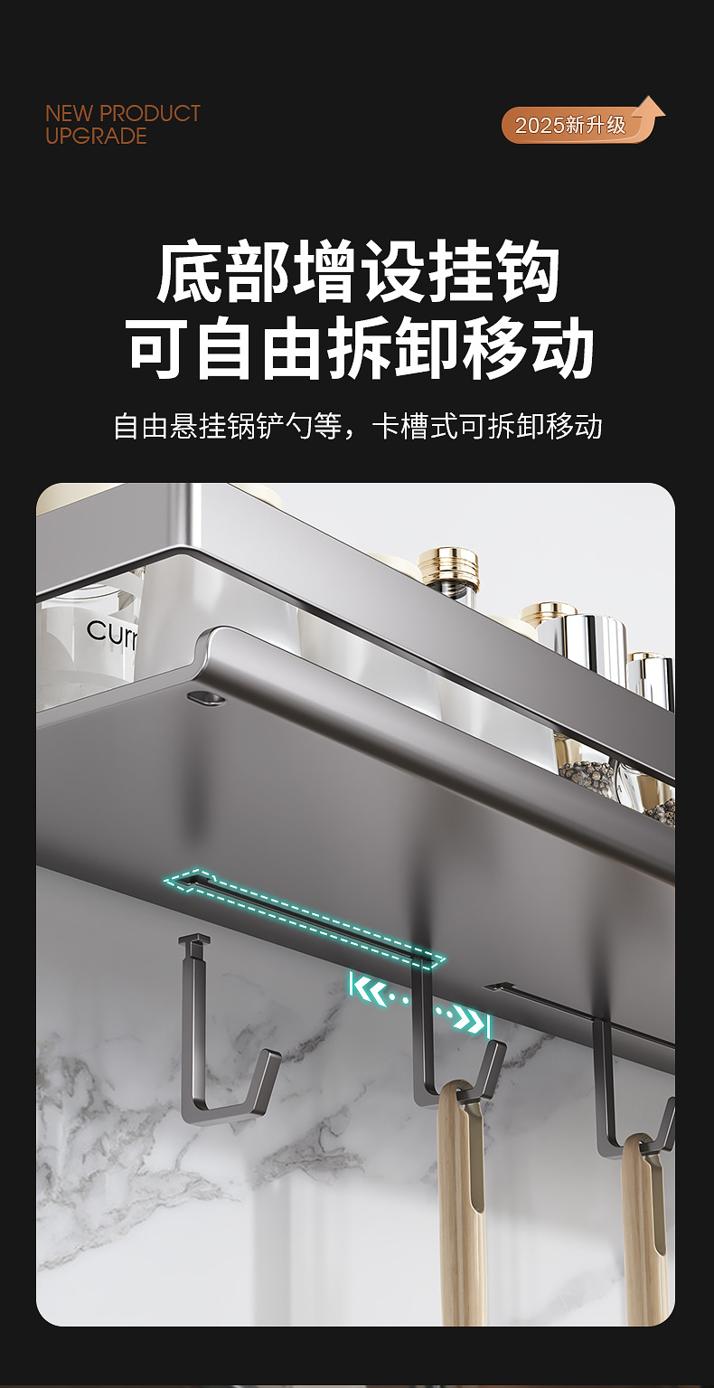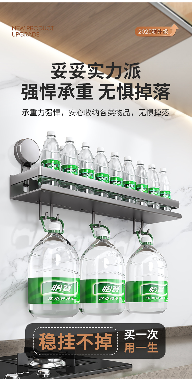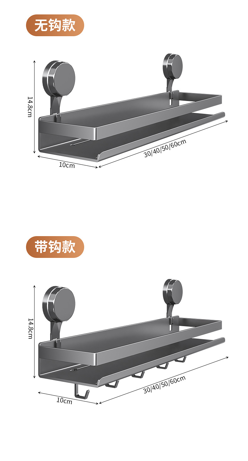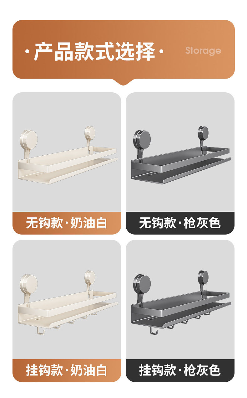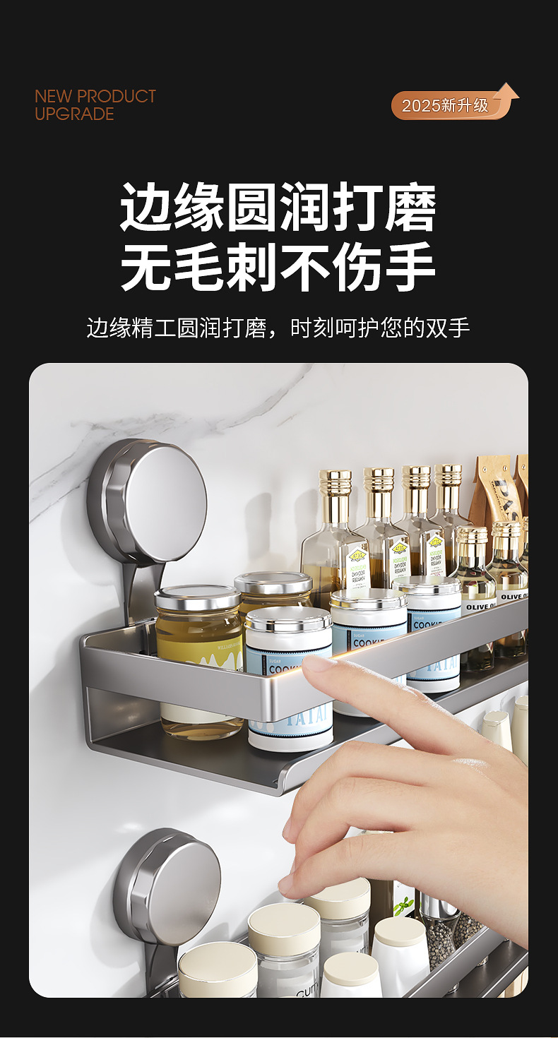 새로운 무타공 흡착컵 주방 수납 선반, 다기능 가정용 벽걸이형 벽걸이 양념통 수납 선반
