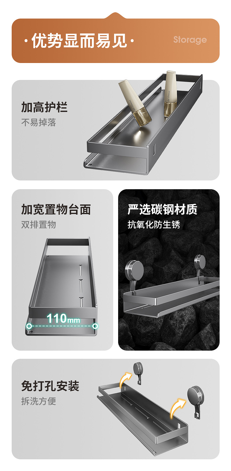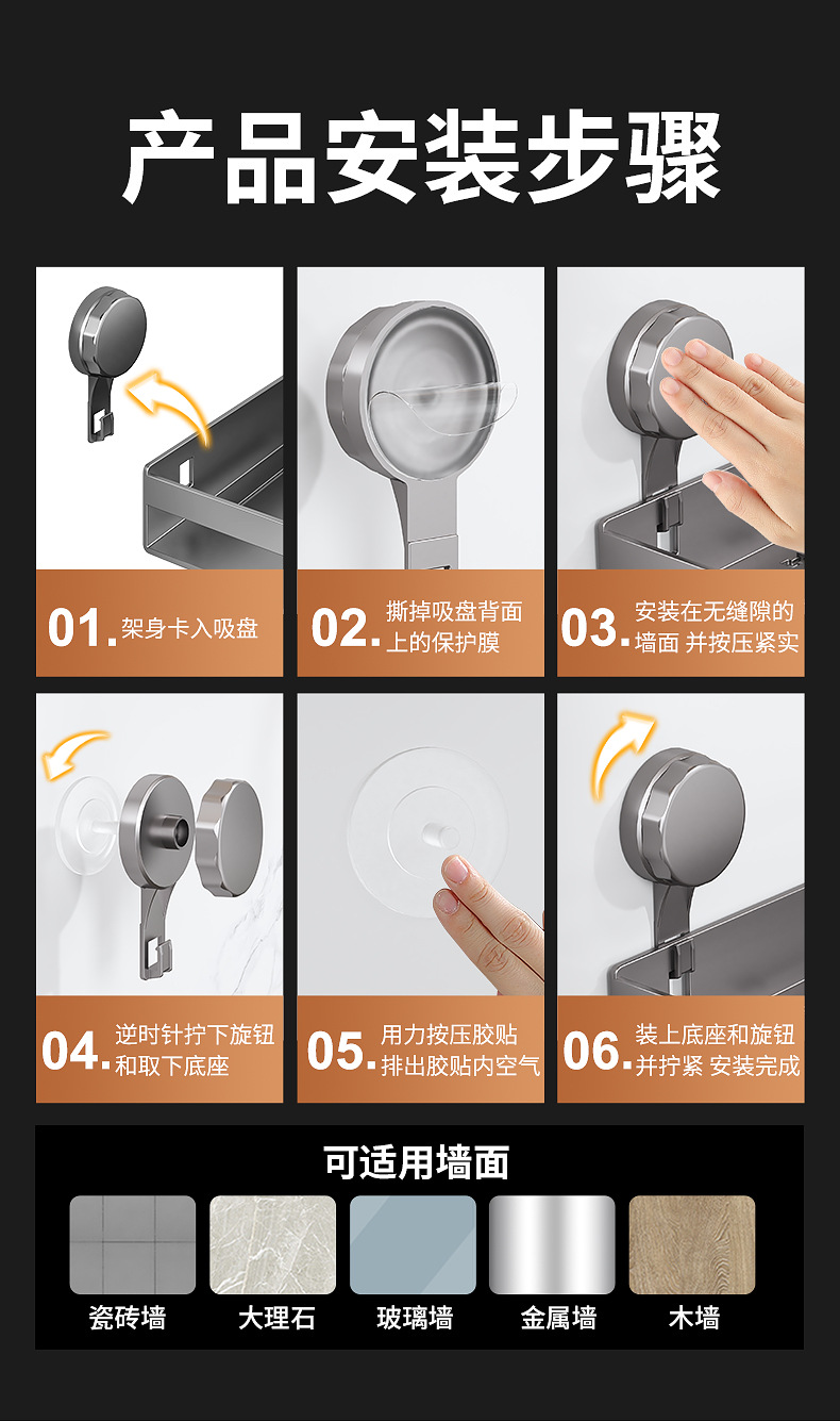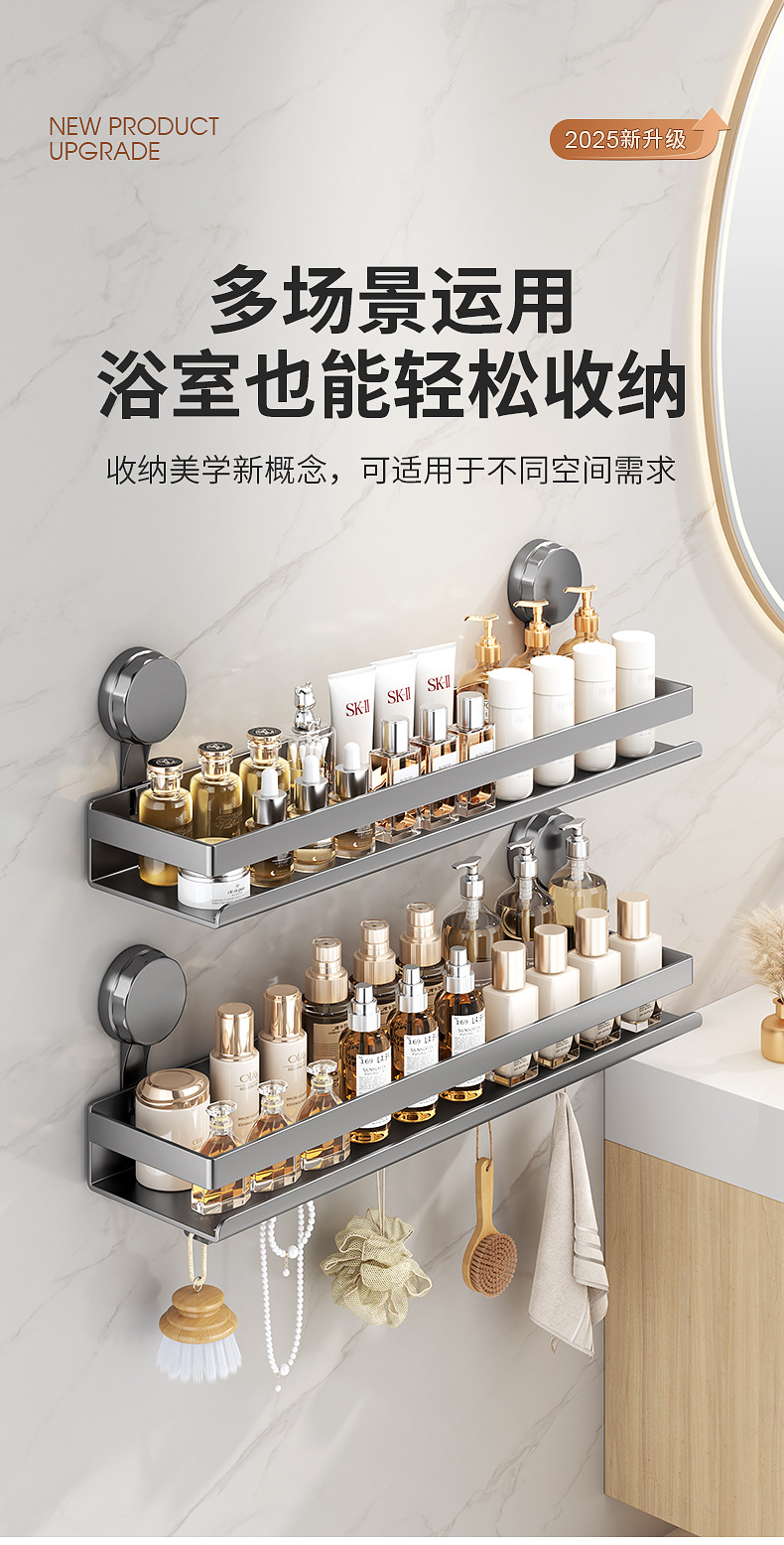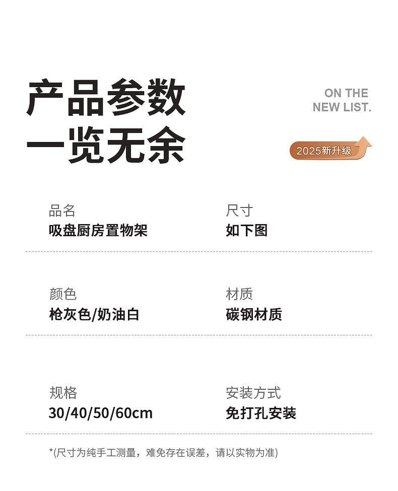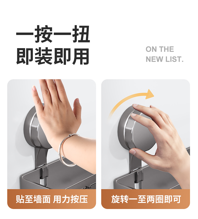 새로운 무타공 흡착컵 주방 수납 선반, 다기능 가정용 벽걸이형 벽걸이 양념통 수납 선반