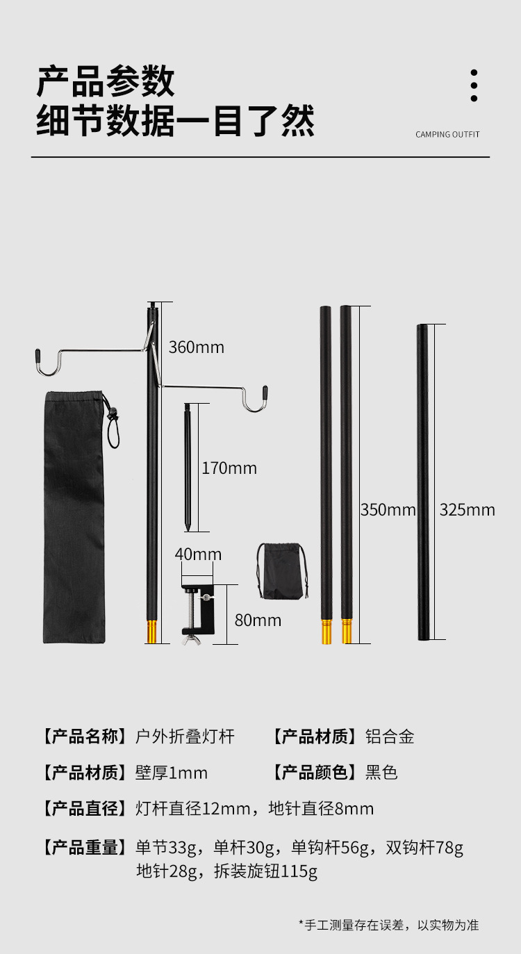 라이트 스탠드 야외 캠핑 조명 폴 휴대용 접이식 알루미늄 합금 캠핑 LED 라이트 브래킷 교수형 조명