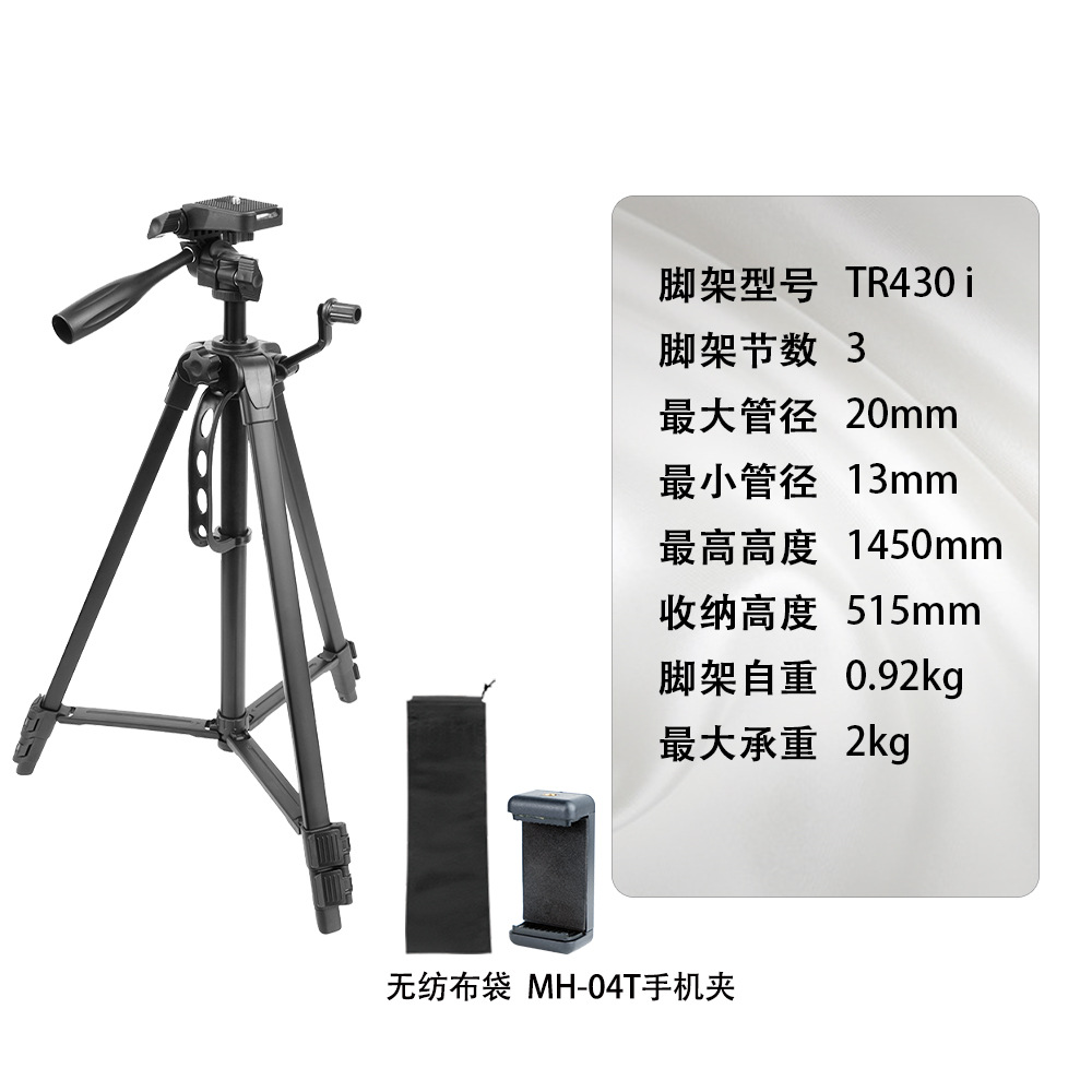 • TR430 i (철제 파이프 1.45m + 컬러 박스 + 부직포 가방 + MH-04T 휴대폰 거치대)