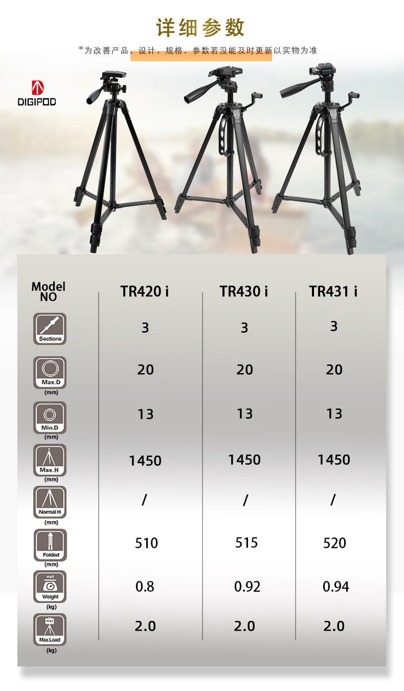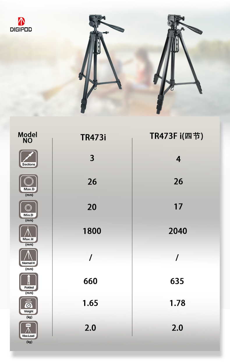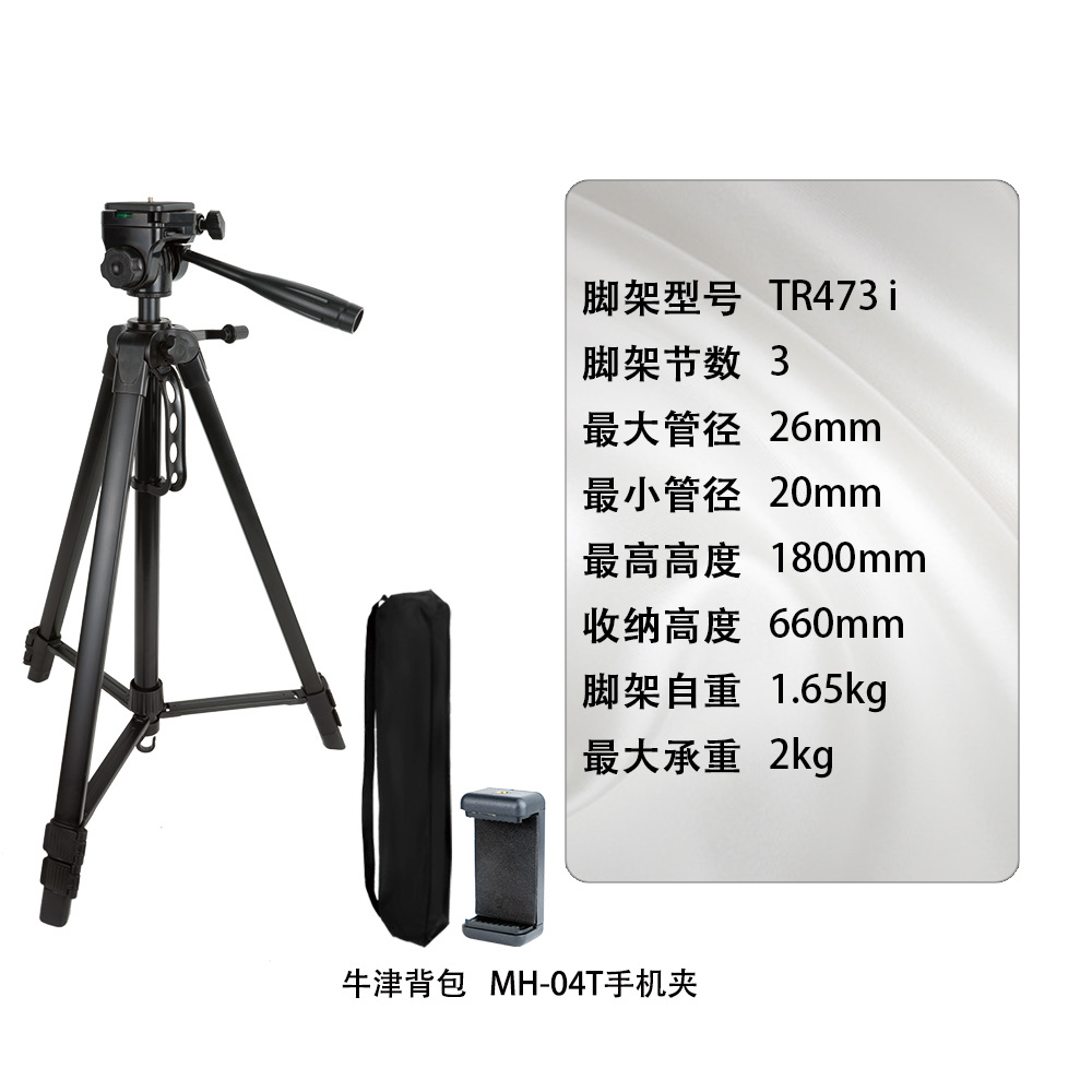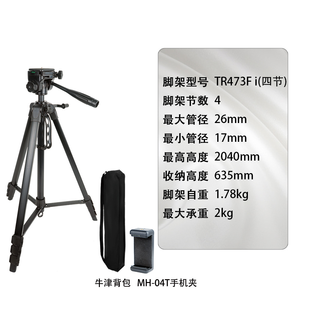 • TR473F i (4단 철제 파이프 2.04m + 컬러 박스 + 옥스포드 백팩 + MH-04T 휴대폰 거치대)