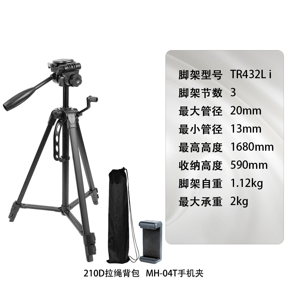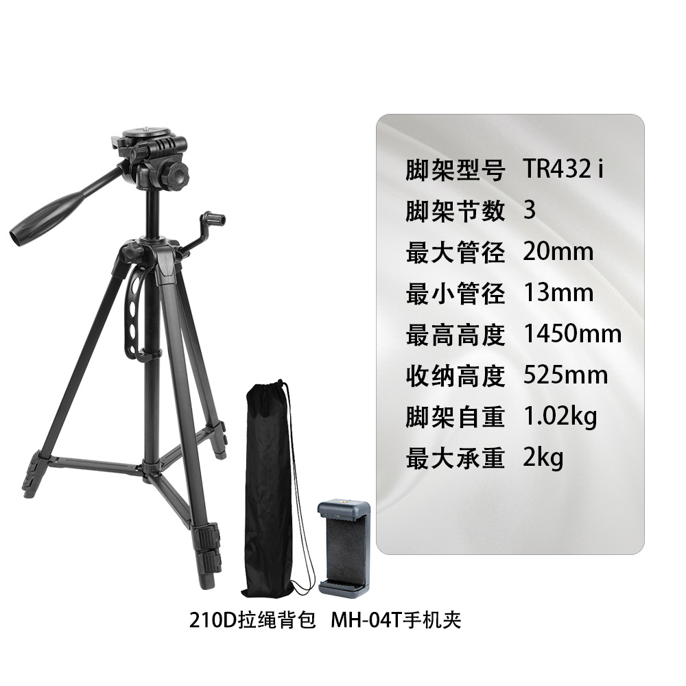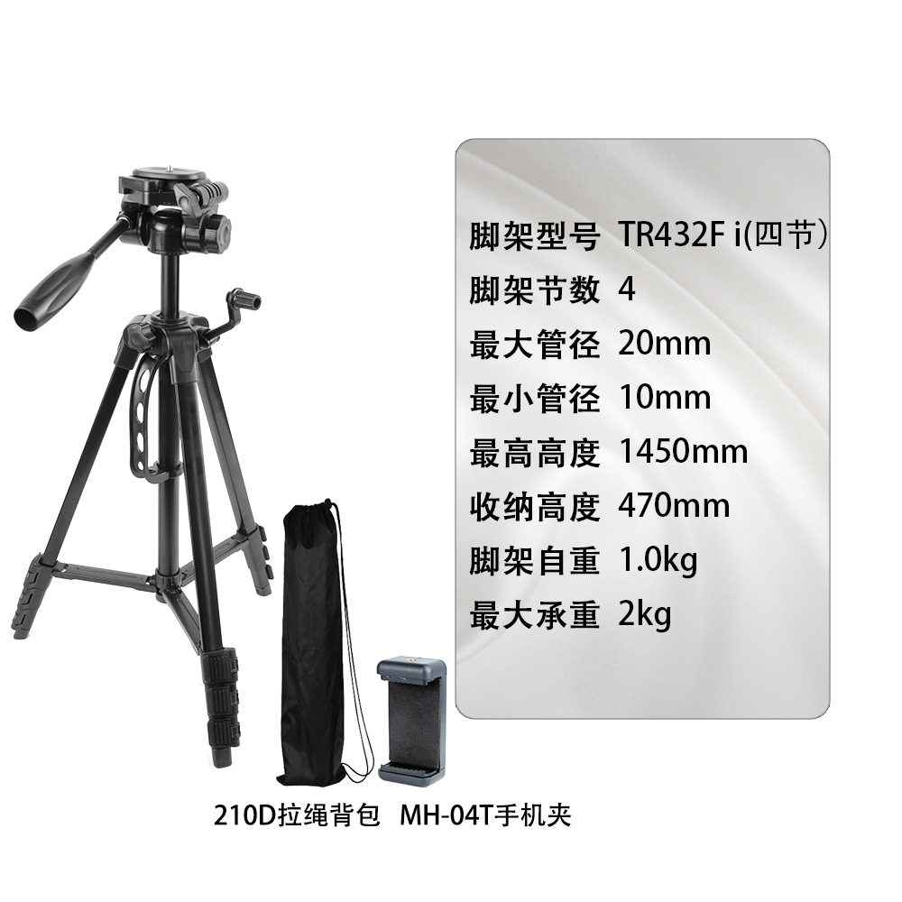 • TR432F i (4단 철제 파이프 1.45m + 컬러 박스 + 210D 드로우스트링 백팩 + MH-04T 휴대폰 거치대)