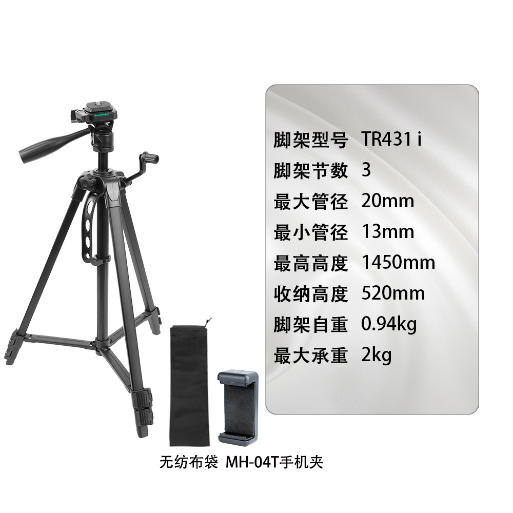 • TR431 i (철제 파이프 1.45m + 컬러 박스 + 부직포 가방 + MH-04T 휴대폰 거치대)