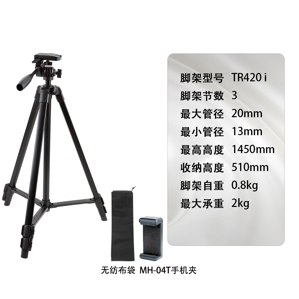 • TR420 i (철제 파이프 1.45m + 컬러 박스 + 부직포 가방 + MH-04T 휴대폰 거치대)