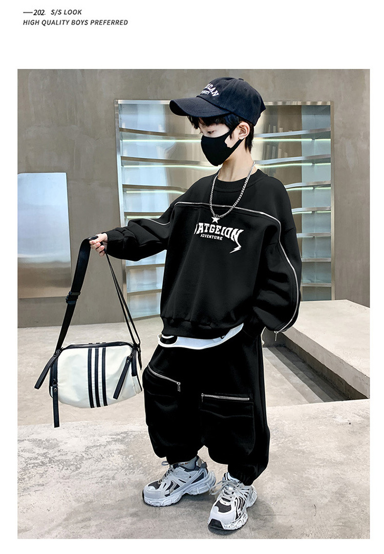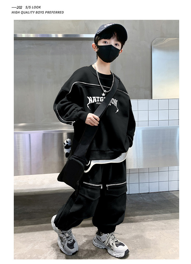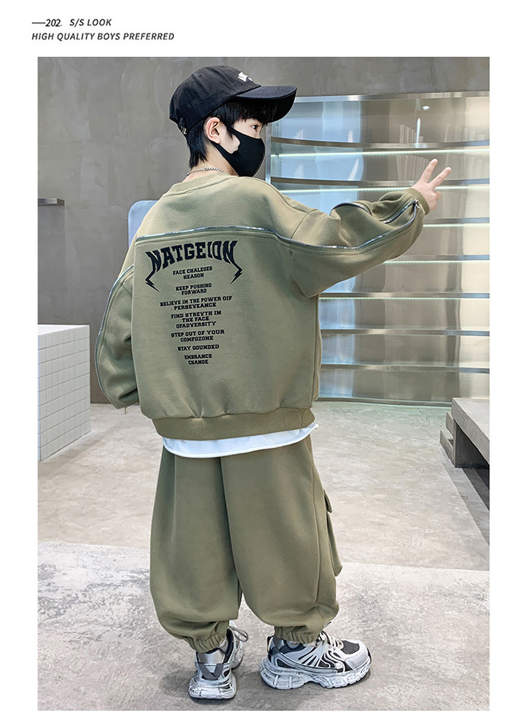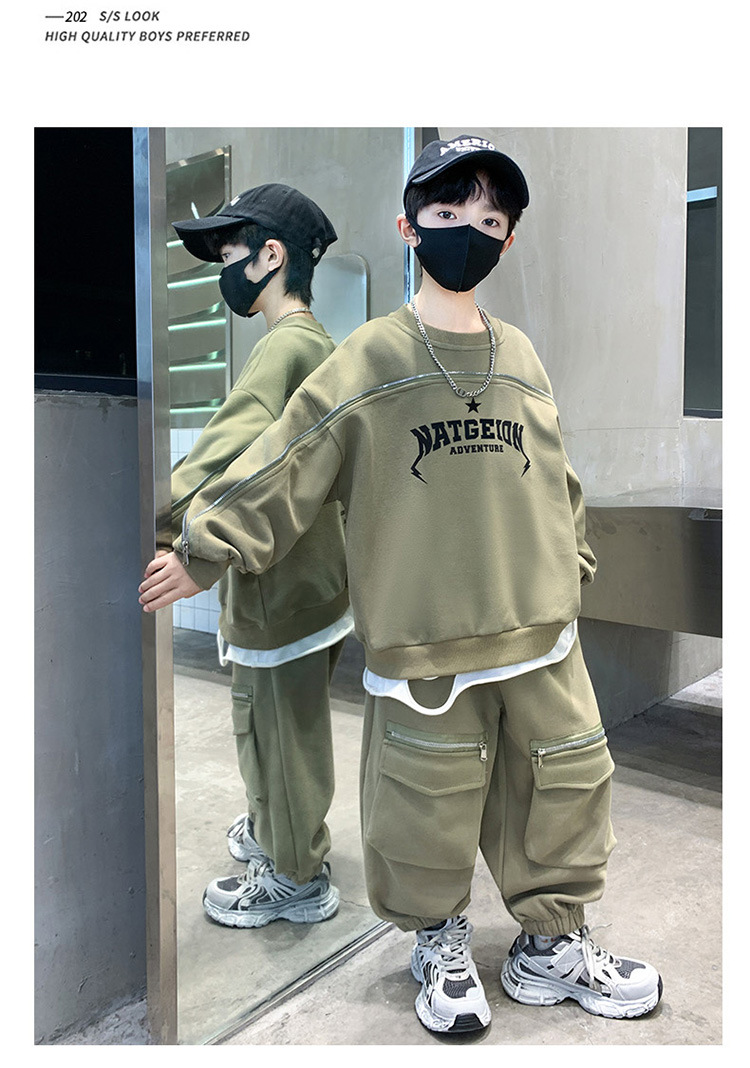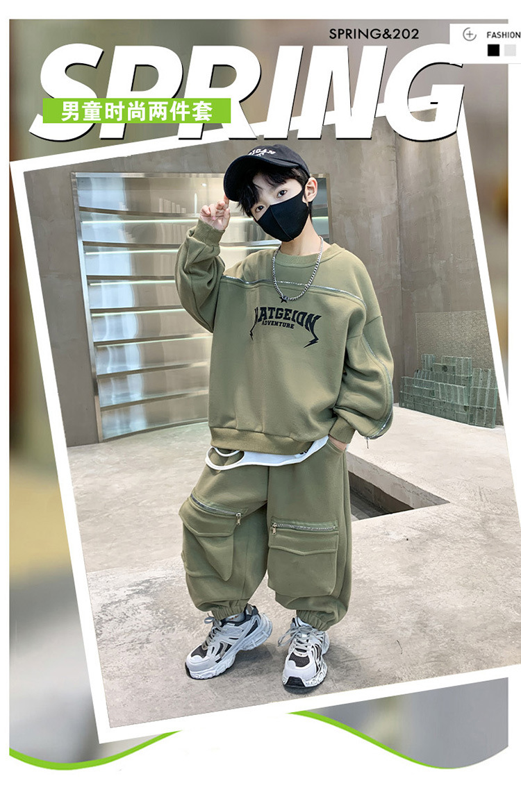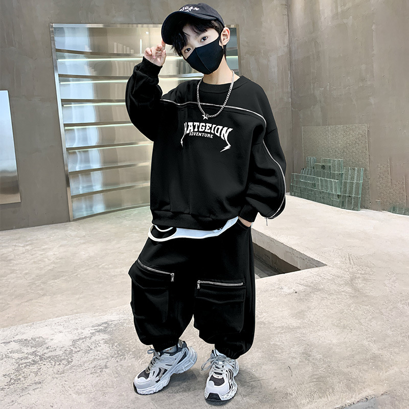 어린이 착용 소년의 봄 착용 2025 세트 새로운 봄과 가을 스포츠 큰 소년의 잘 생긴 투피스 유행 세트