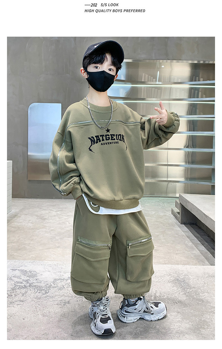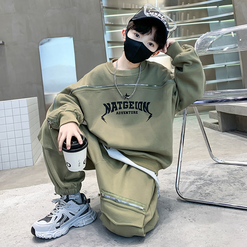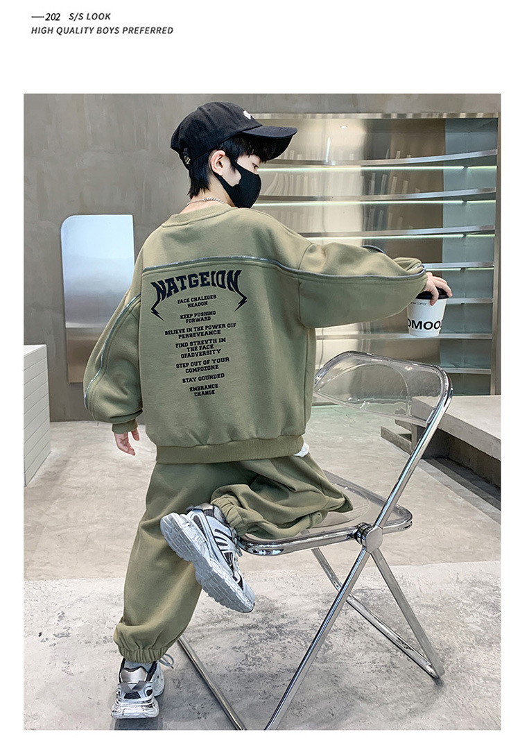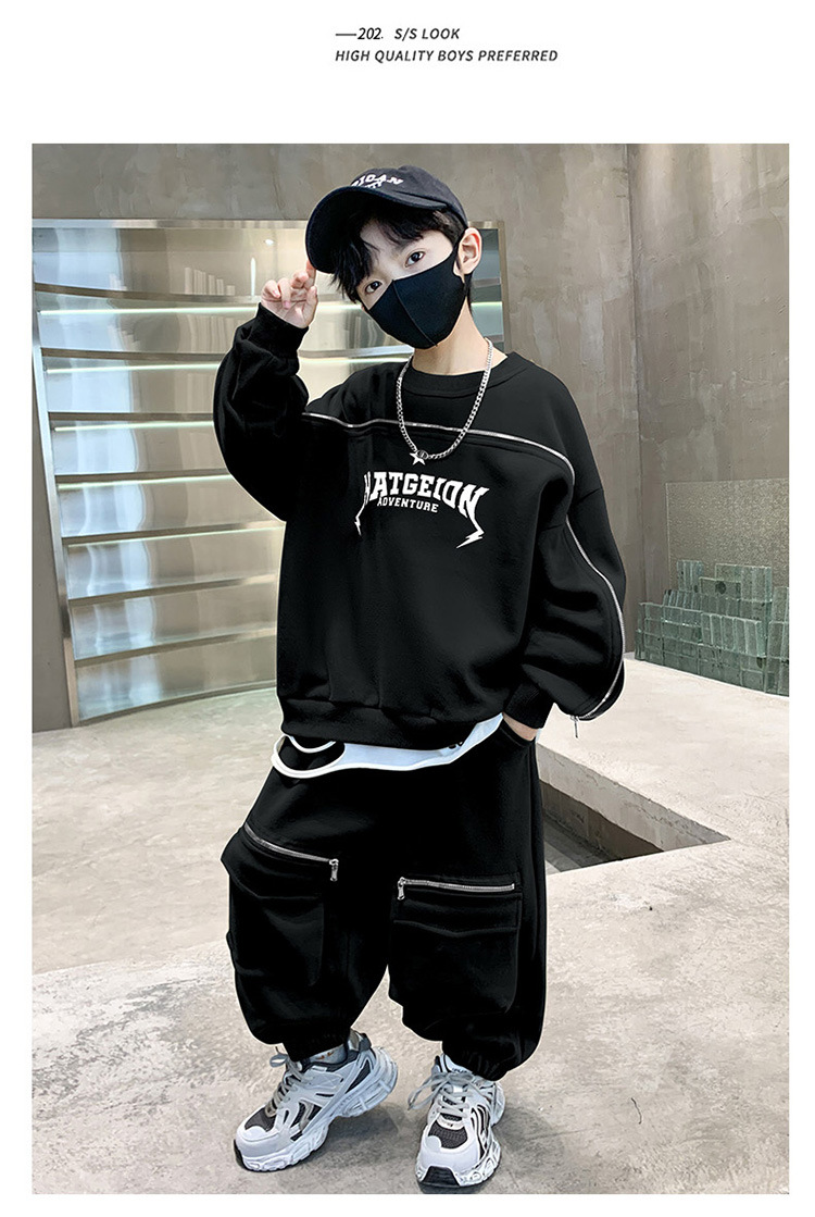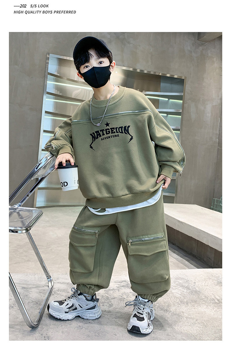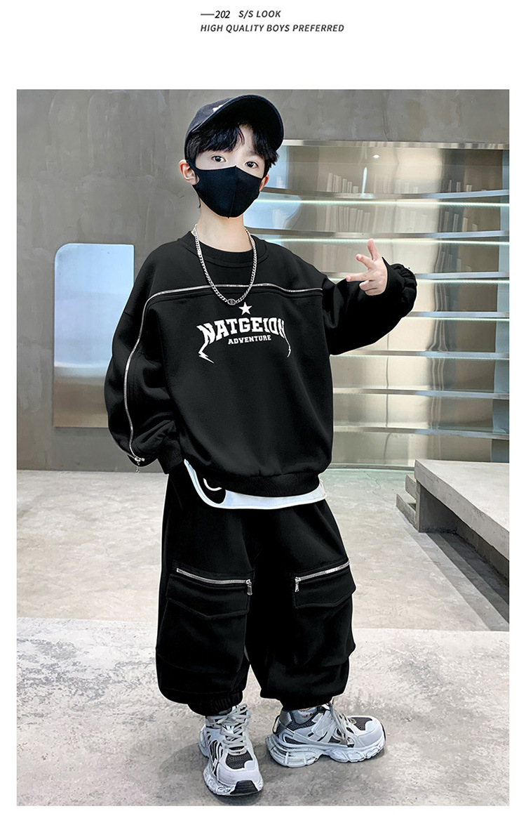 어린이 착용 소년의 봄 착용 2025 세트 새로운 봄과 가을 스포츠 큰 소년의 잘 생긴 투피스 유행 세트