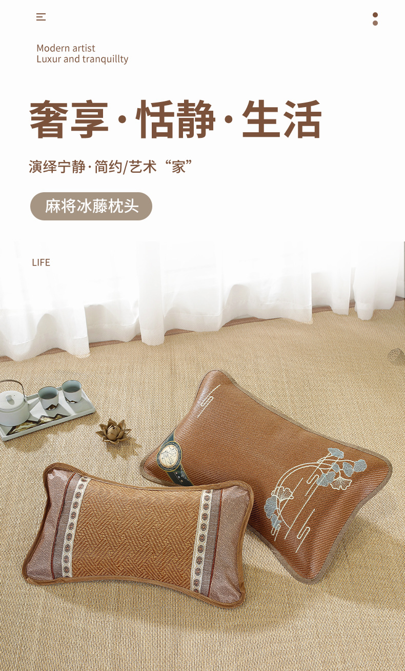 여름 성인 목 마작 베개 낮잠 매트 등나무 매트 얼음 실크 베개 대나무 베개 자궁 경부 척추 단일 베개 코어