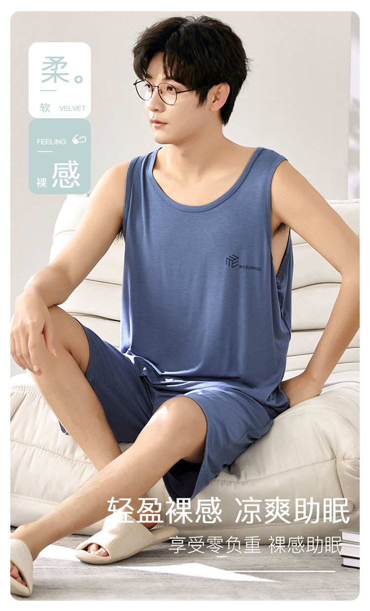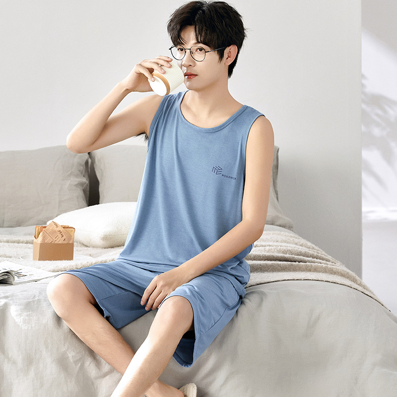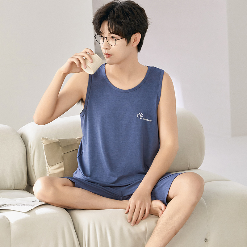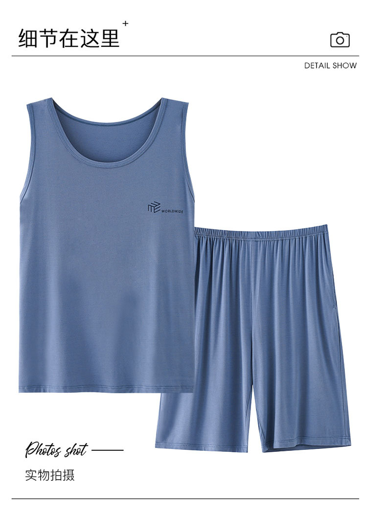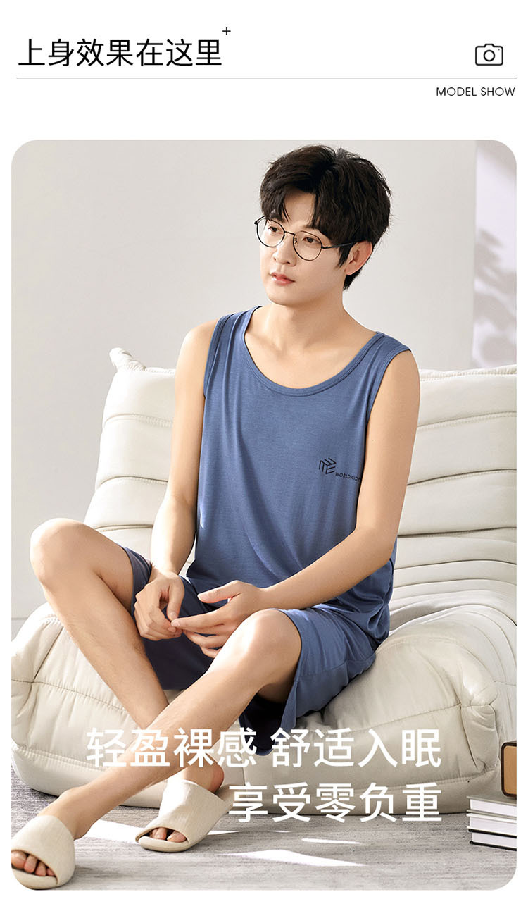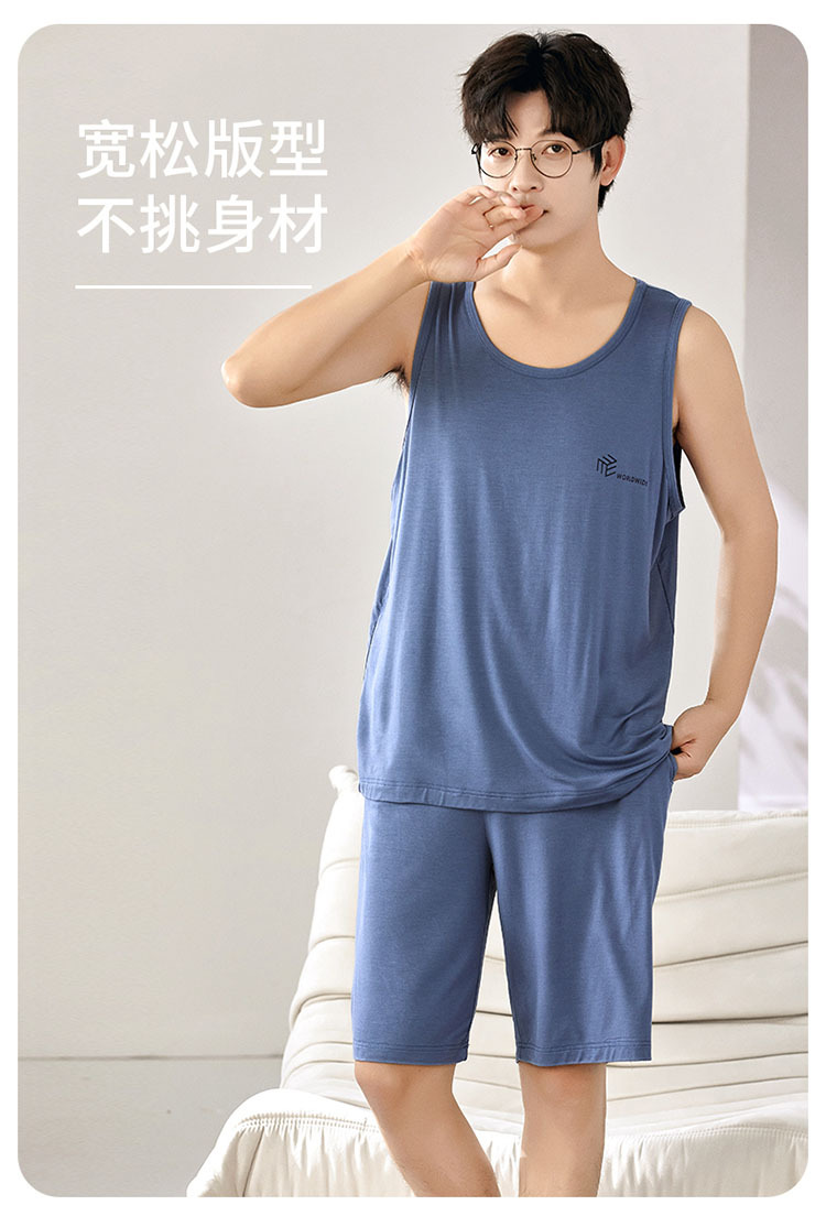 2025 새로운 모달 파자마 남자 조끼 반바지 여름 둥근 목 얇은 플러스 사이즈 홈 의류 세트 외복스토어 가기
