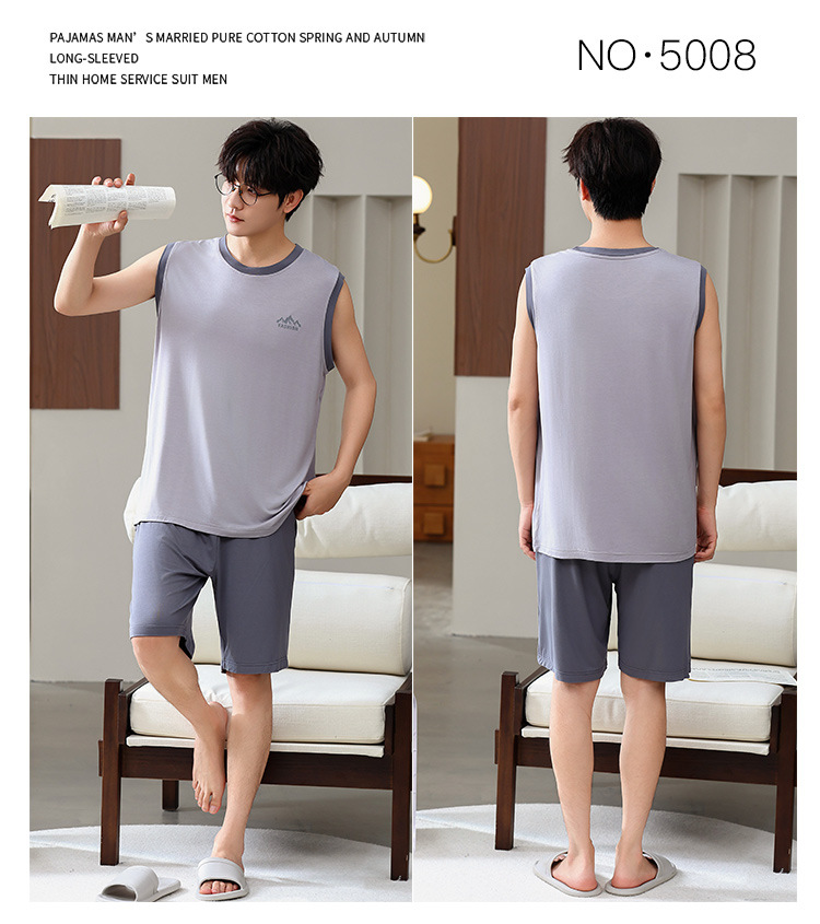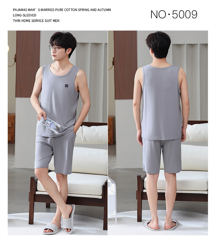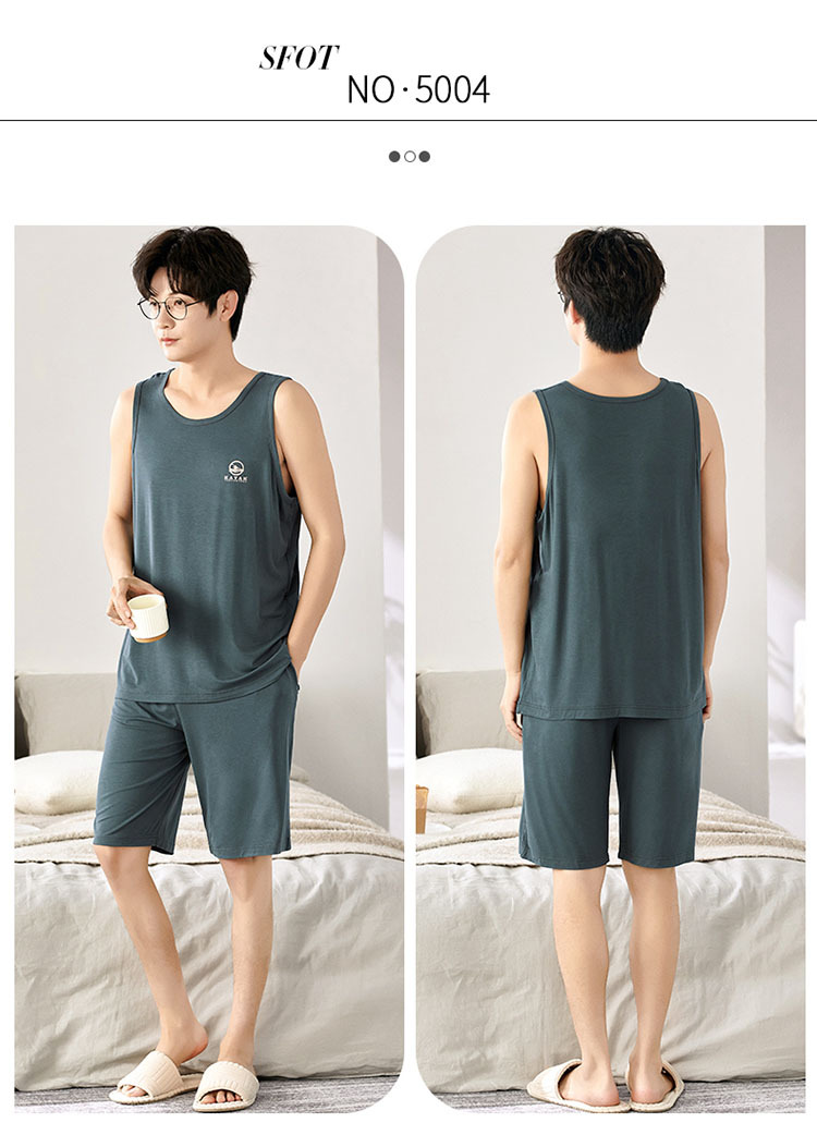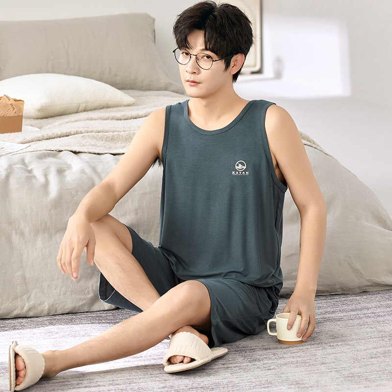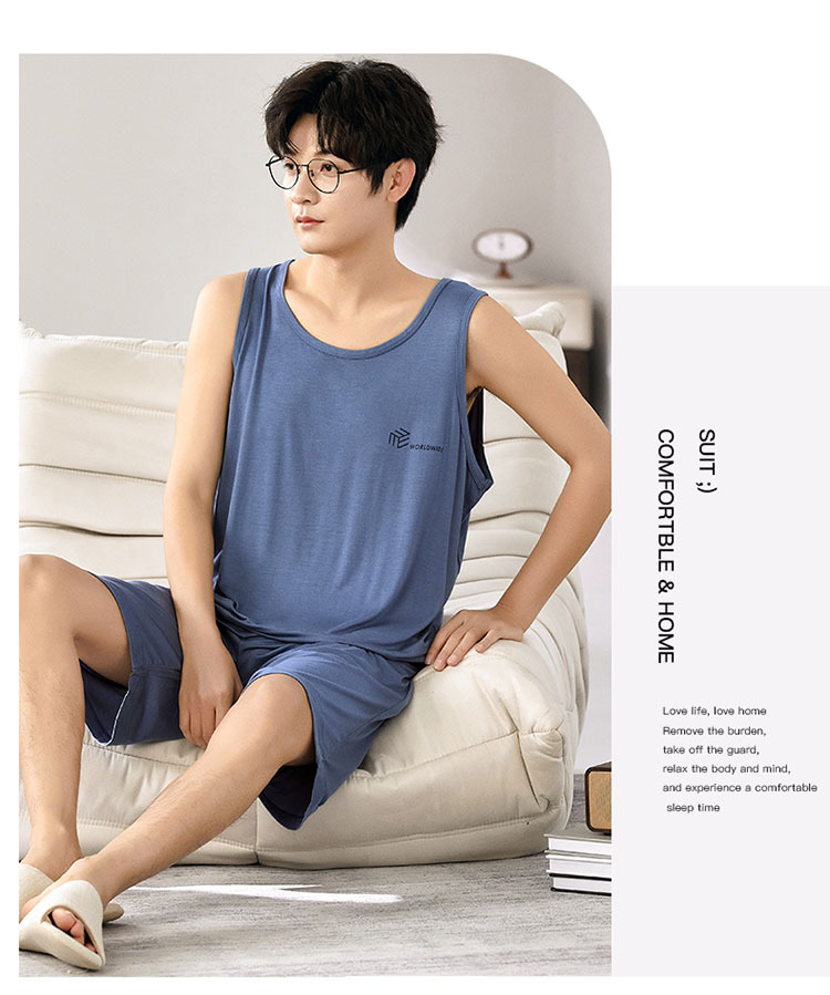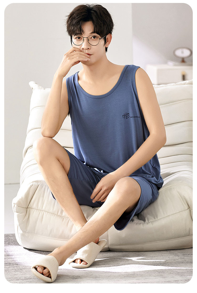 2025 새로운 모달 파자마 남자 조끼 반바지 여름 둥근 목 얇은 플러스 사이즈 홈 의류 세트 외복스토어 가기
