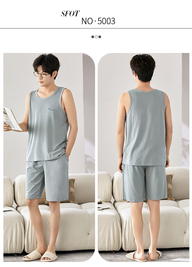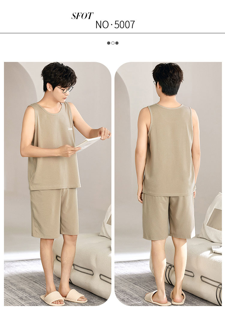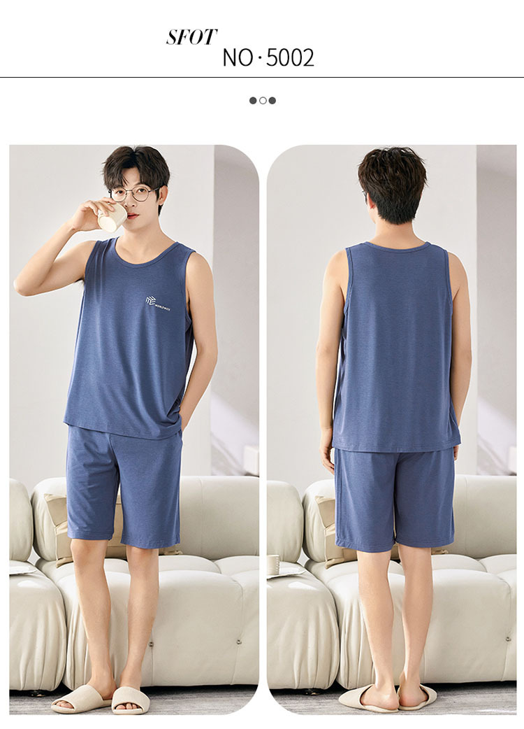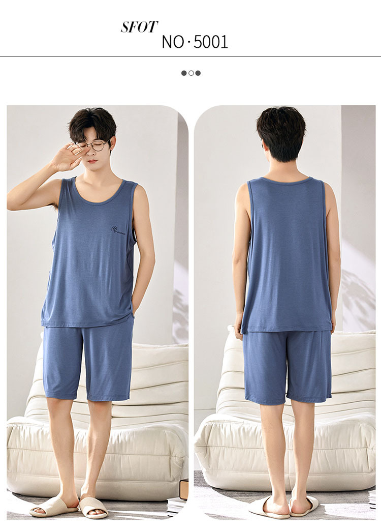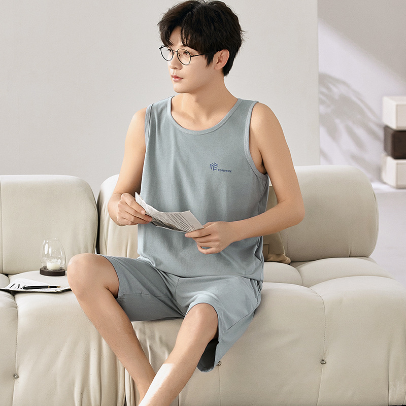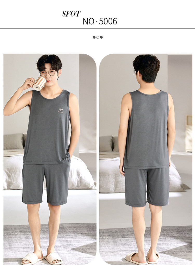 2025 새로운 모달 파자마 남자 조끼 반바지 여름 둥근 목 얇은 플러스 사이즈 홈 의류 세트 외복스토어 가기