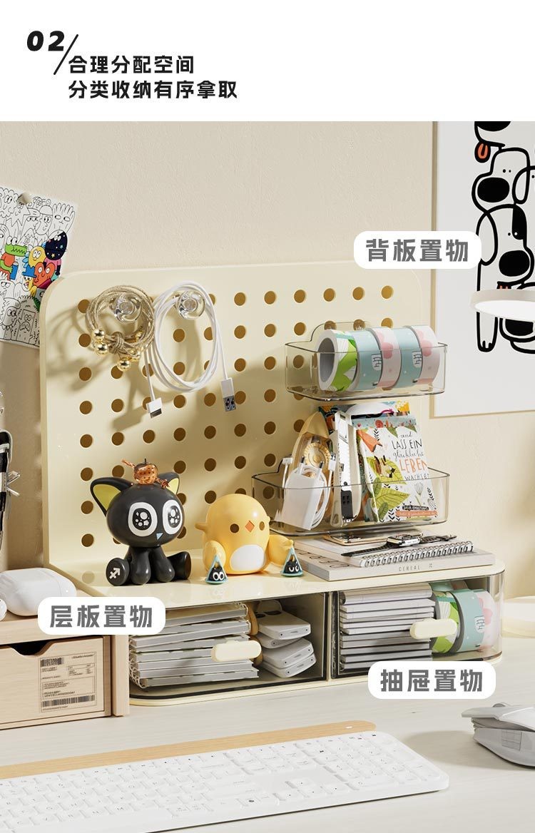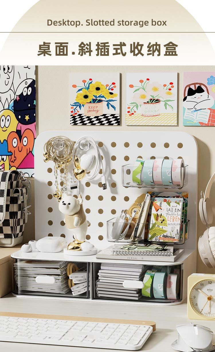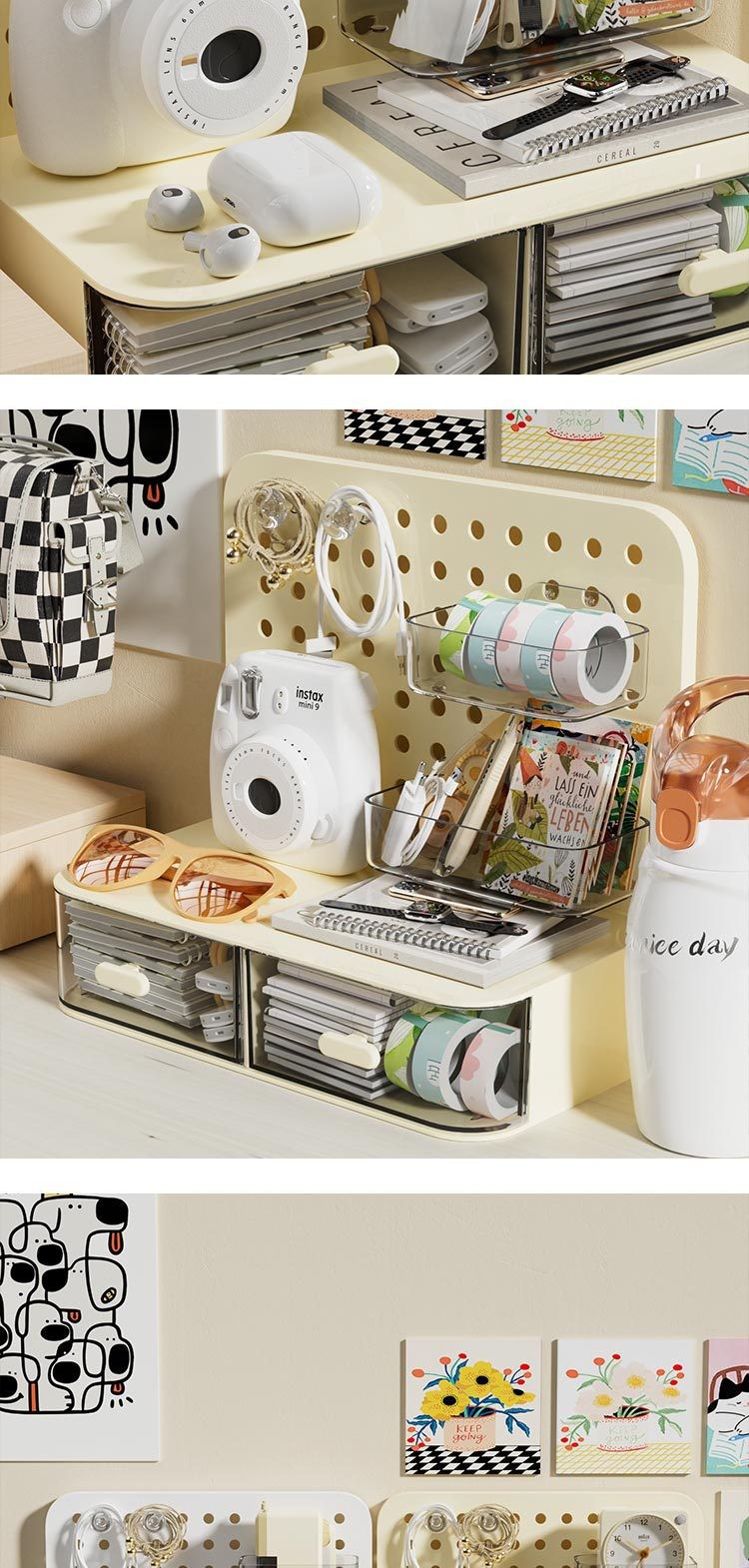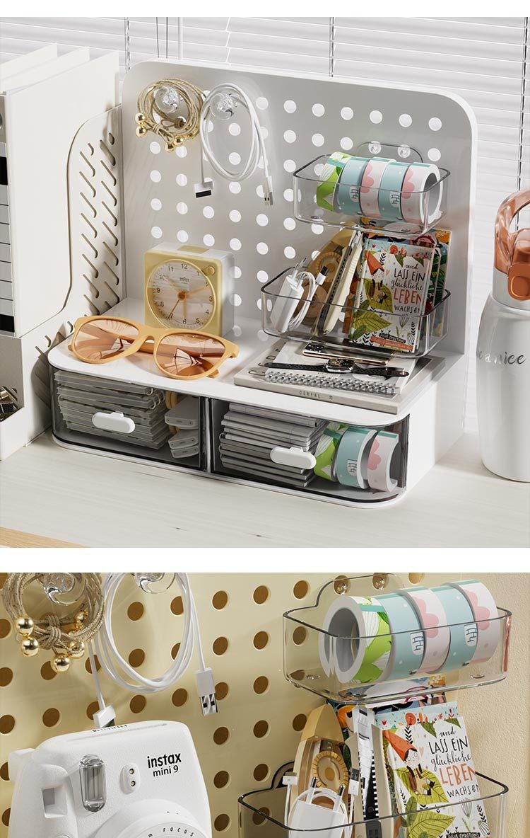 데스크탑 홀 보드 수직 저장 랙 크림 스타일 기숙사 서랍 유형 다기능 학생 책상 마감 보관 상자스토어 가기