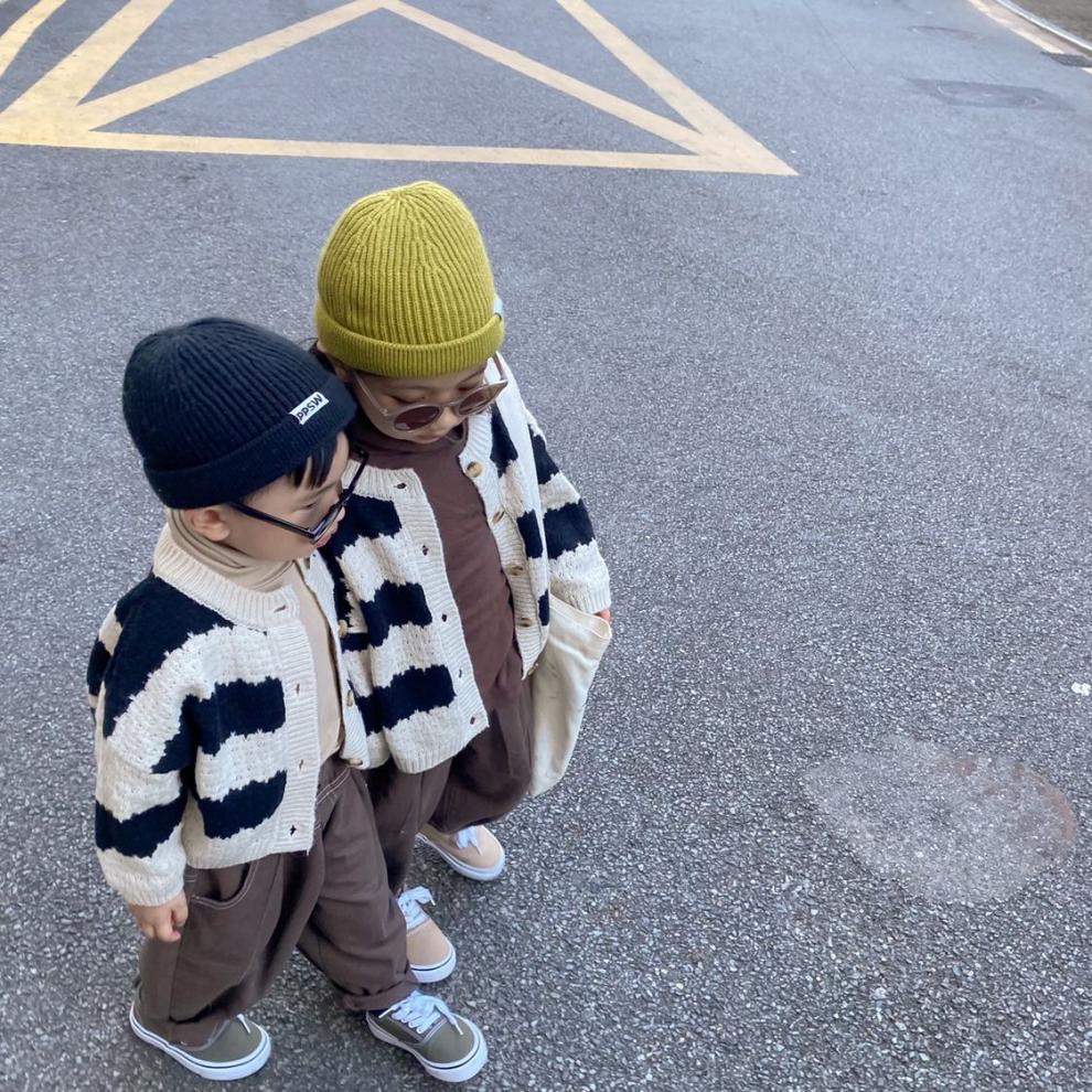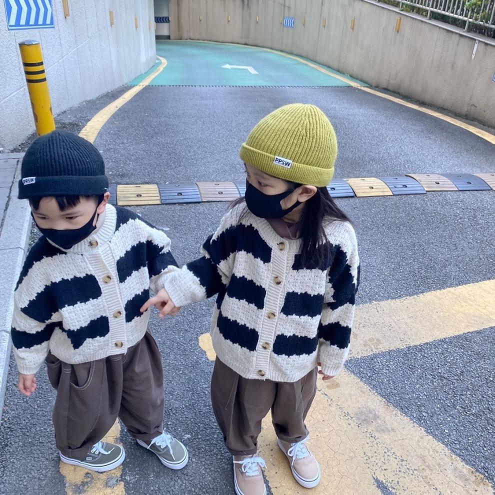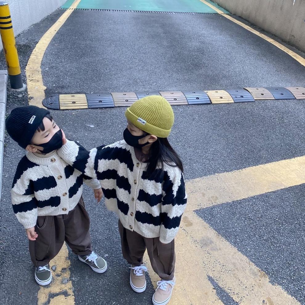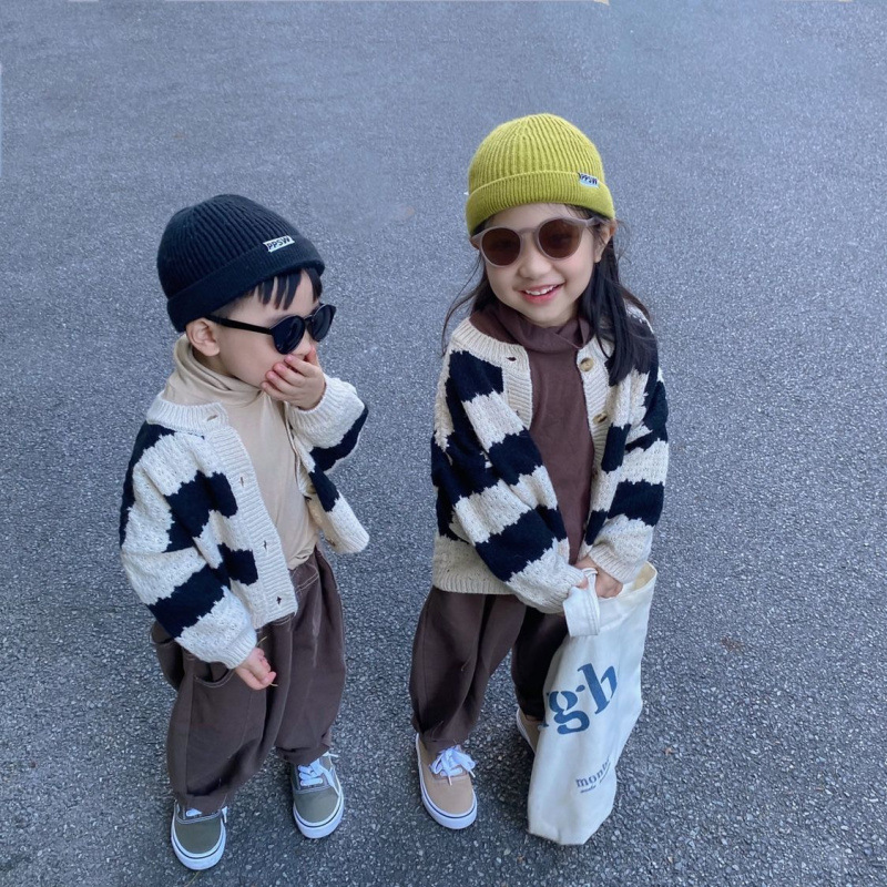소년 소녀를위한 어린이 흑백 줄무늬 카디건 아기 크로 셰 스웨터 스웨터 2024 봄과 가을 의류스토어 가기
