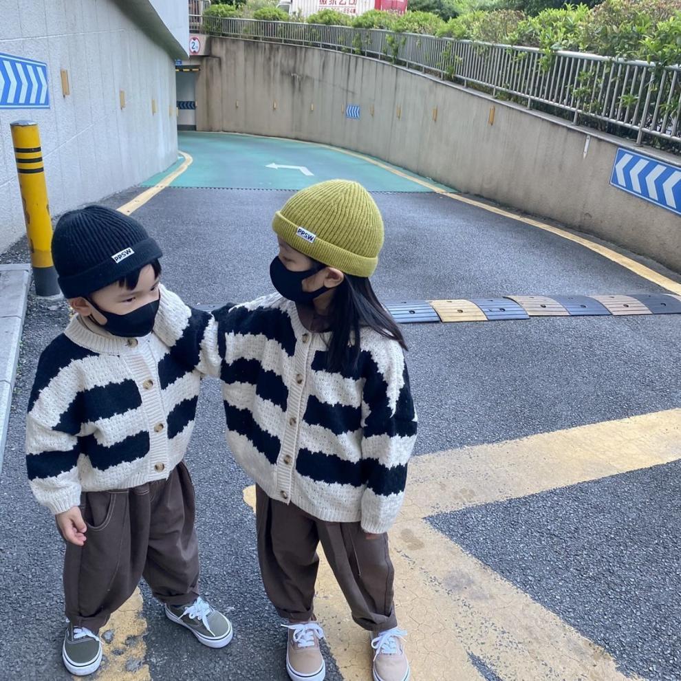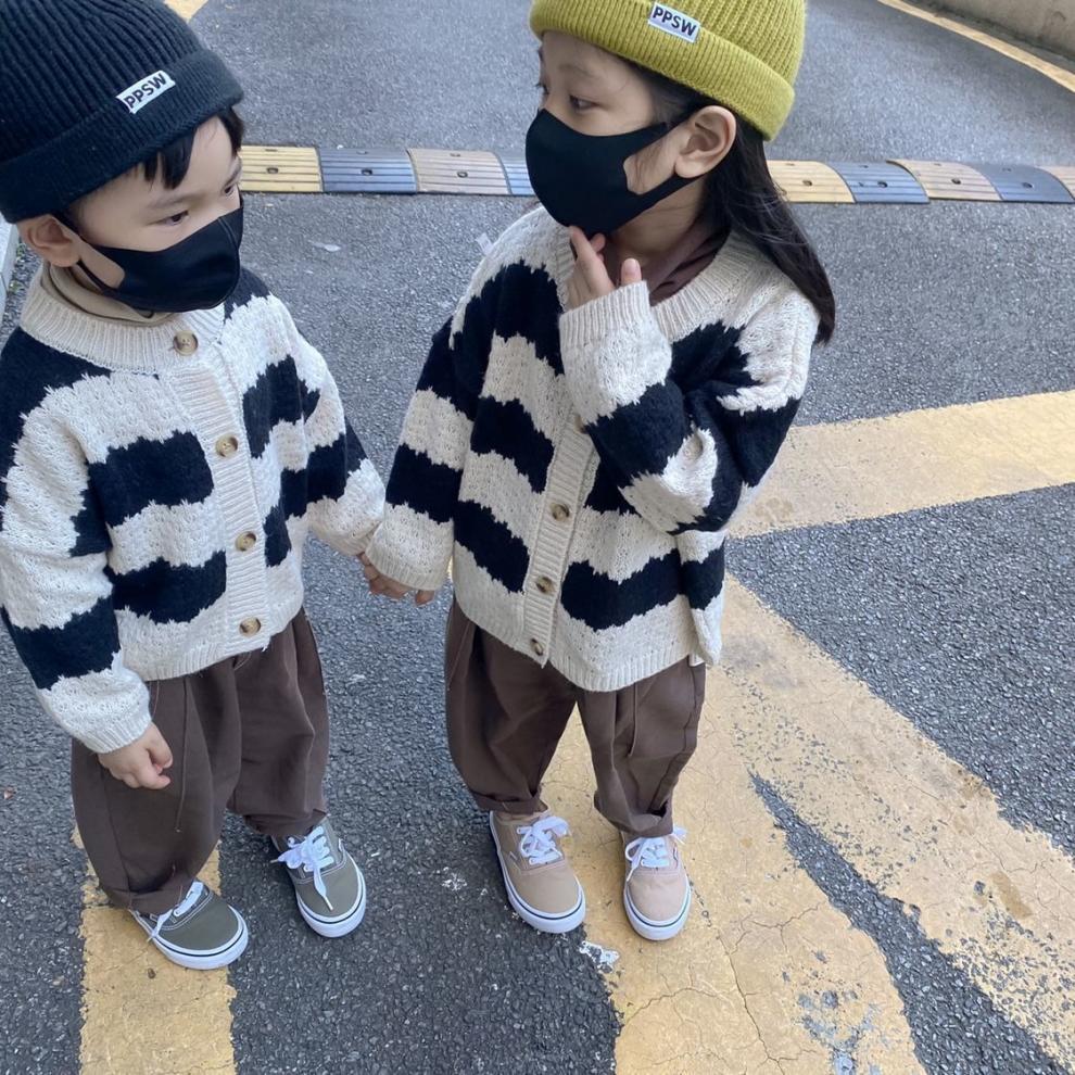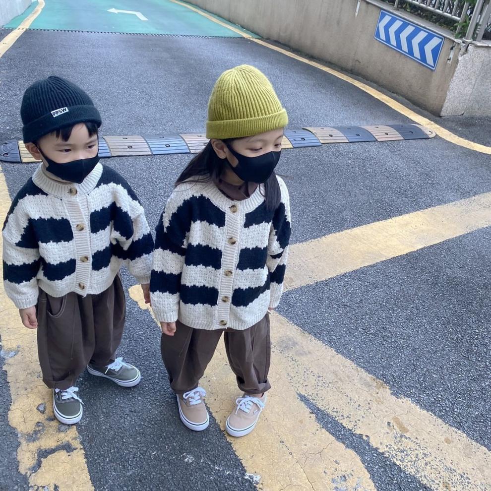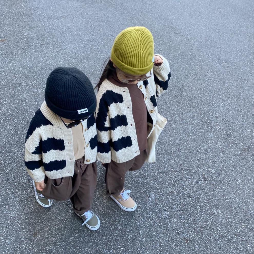 소년 소녀를위한 어린이 흑백 줄무늬 카디건 아기 크로 셰 스웨터 스웨터 2024 봄과 가을 의류스토어 가기