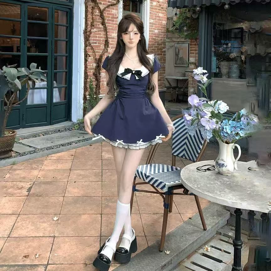활 대학 스타일 블루 원피스 어린이 여름 2025 새로운 도착 작은 허리 A 라인 투투 스커트스토어 가기