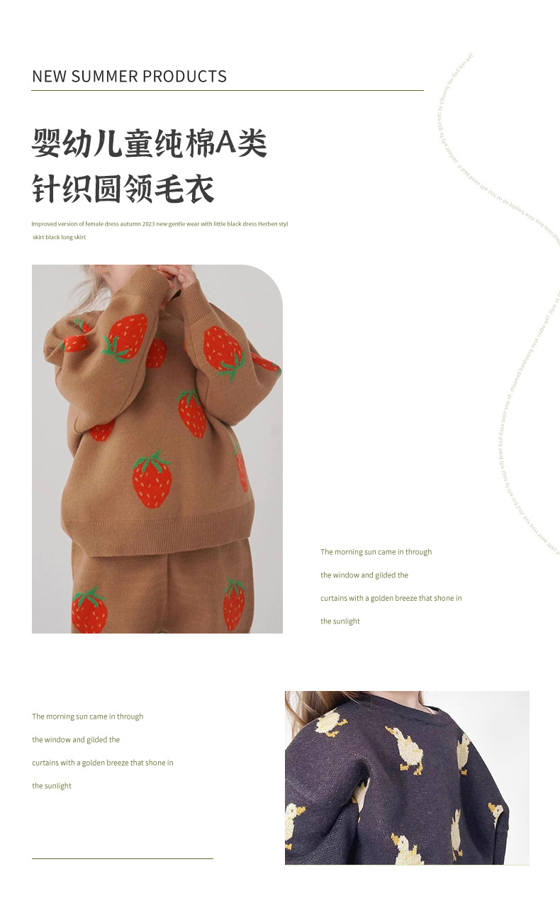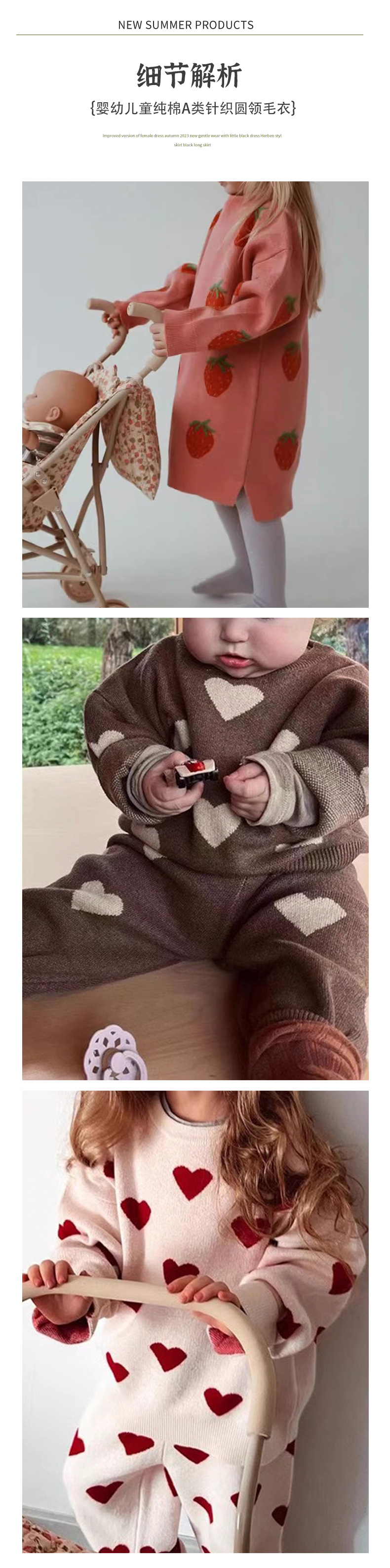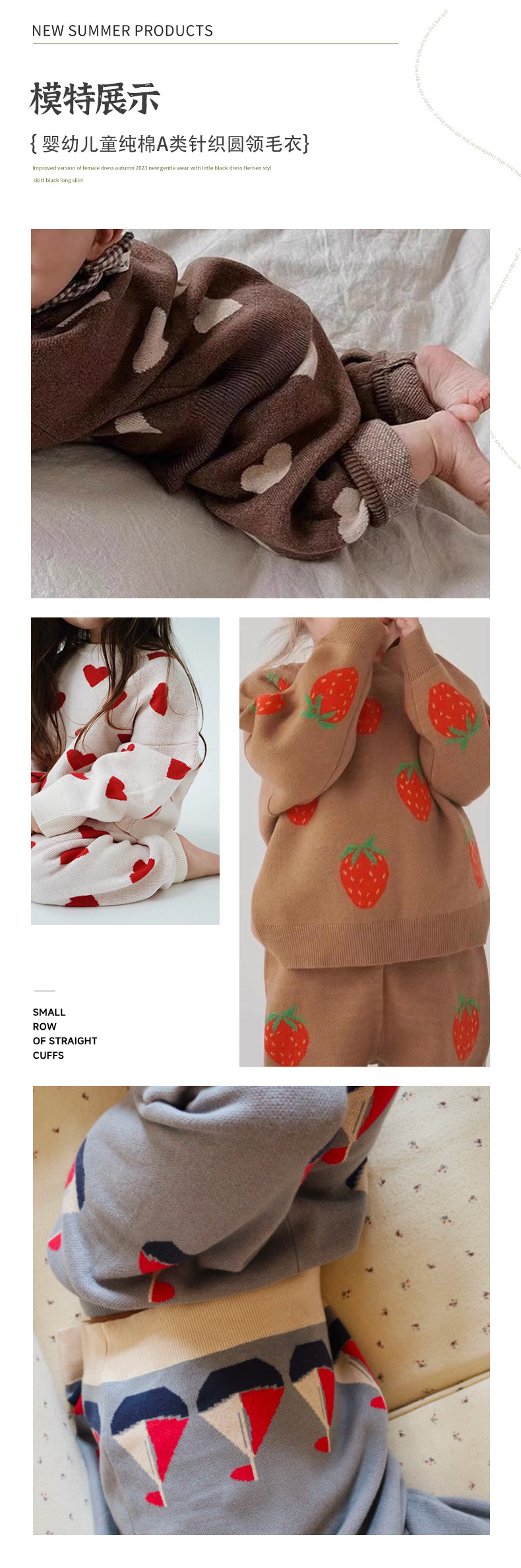 맞춤형 25 봄 ks 같은 스타일 아동복 인형 셔츠 딸기 패턴 대학 스타일 라운드 넥 긴팔 아동 스웨터
