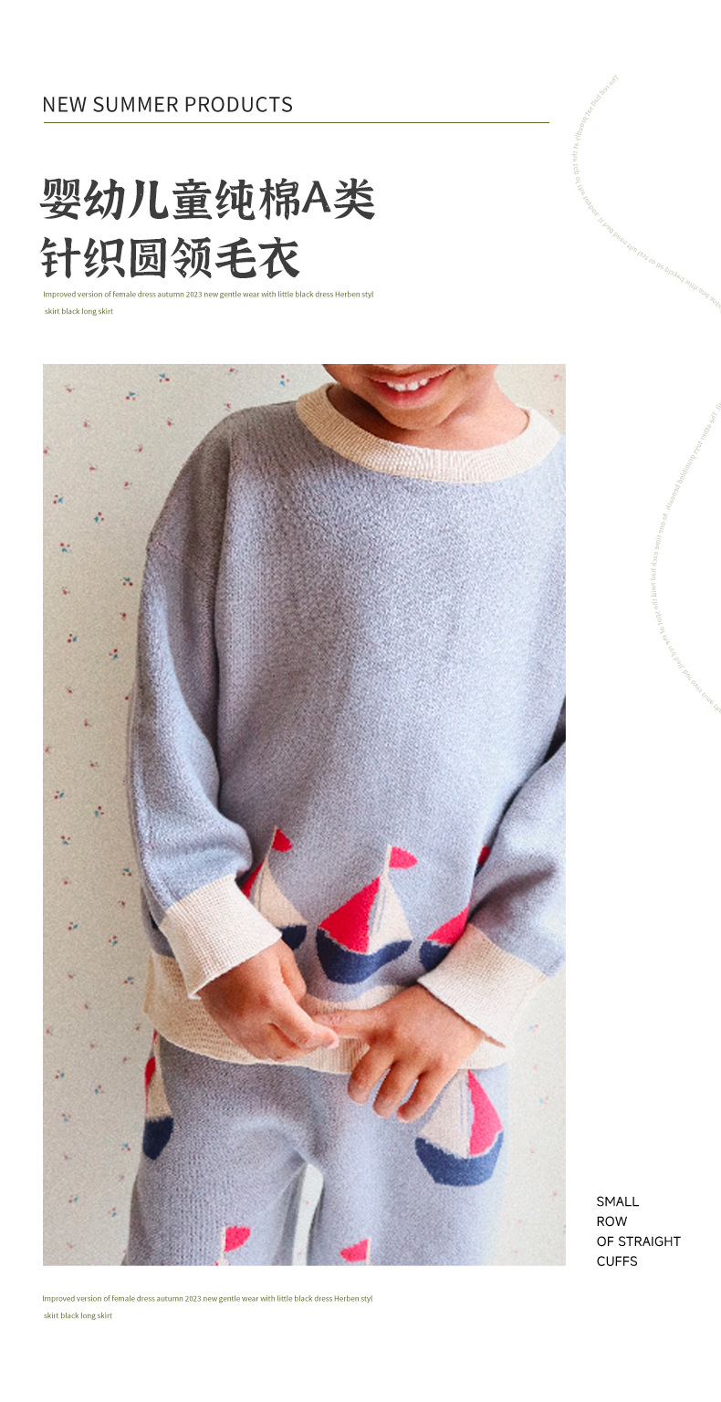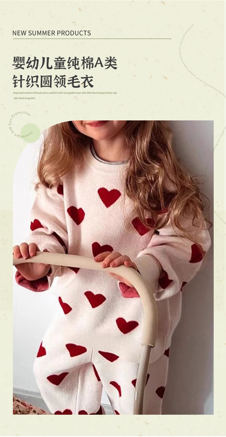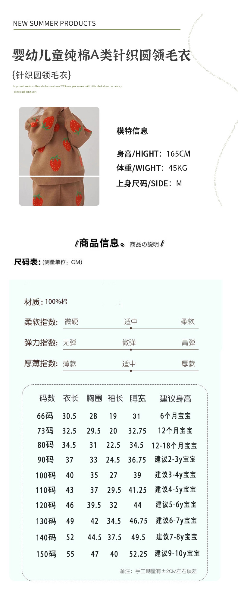 맞춤형 25 봄 ks 같은 스타일 아동복 인형 셔츠 딸기 패턴 대학 스타일 라운드 넥 긴팔 아동 스웨터