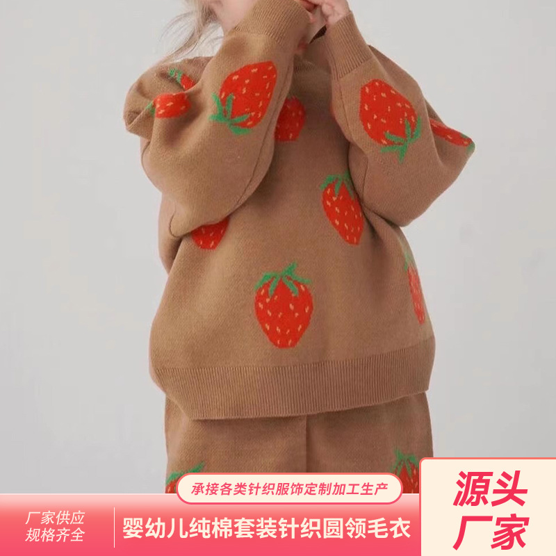 맞춤형 25 봄 ks 같은 스타일 아동복 인형 셔츠 딸기 패턴 대학 스타일 라운드 넥 긴팔 아동 스웨터스토어 가기