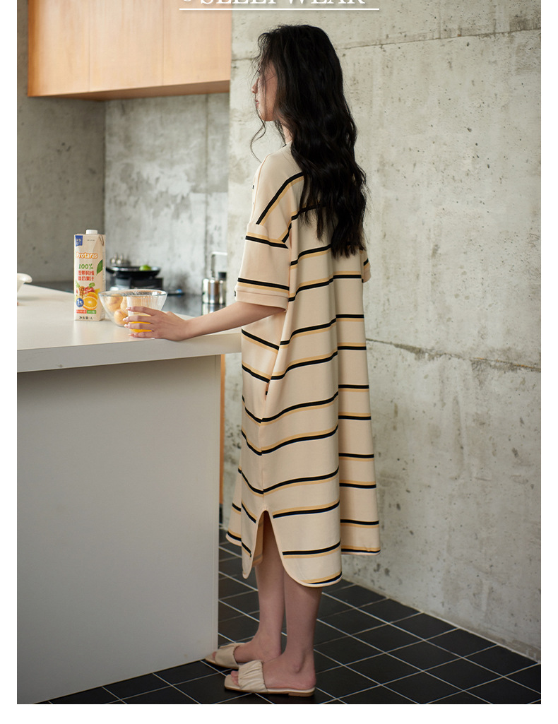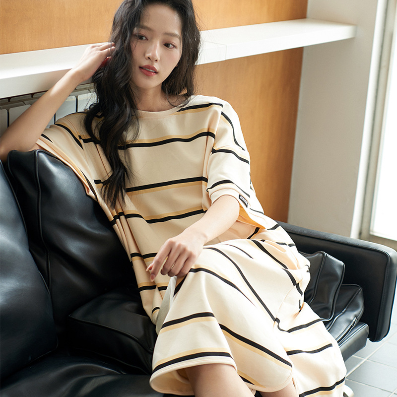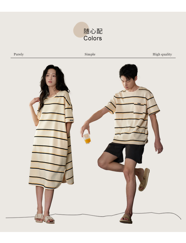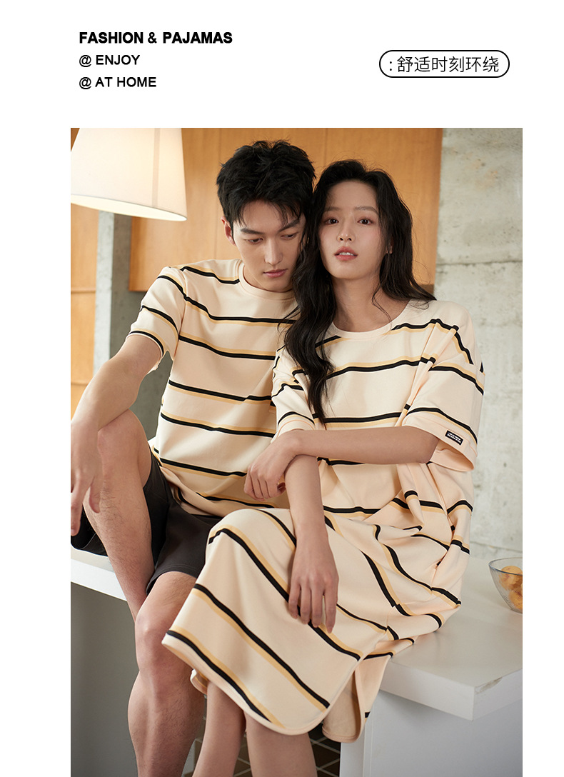 커플 잠옷 여름 순면 반팔 스트라이프 잠옷 여성용 외출 가능 얇고 편안한 남성용 홈웨어