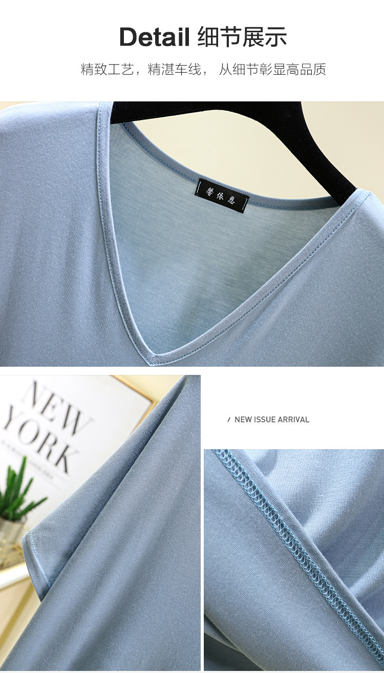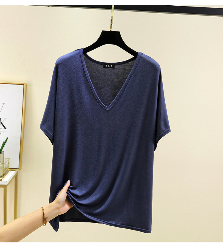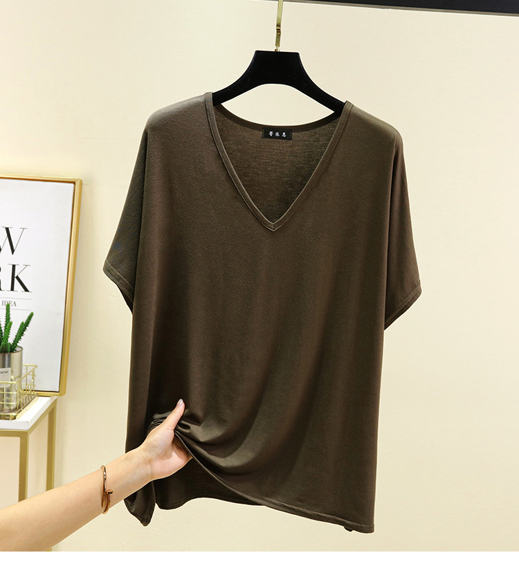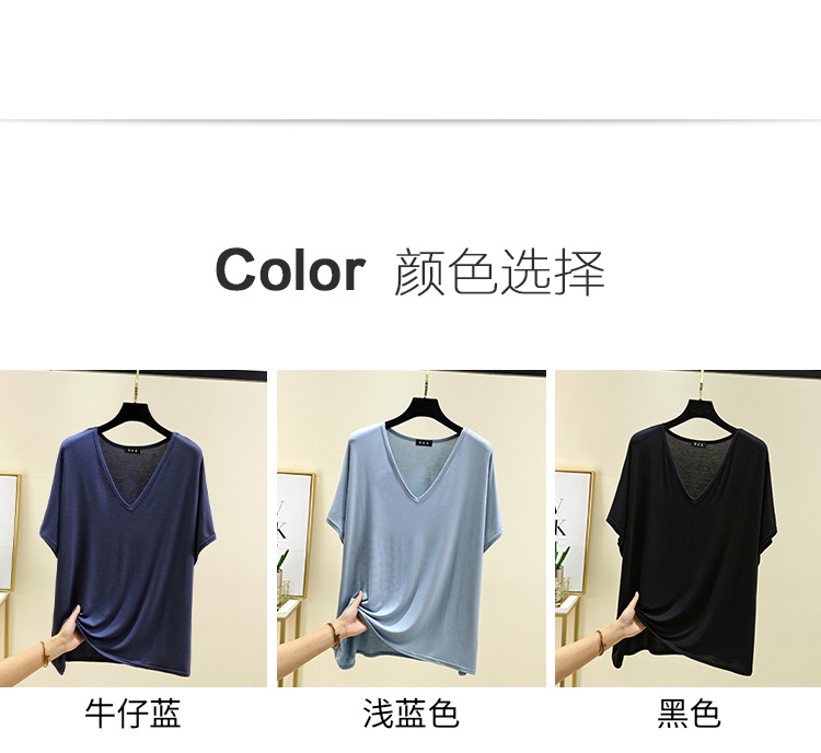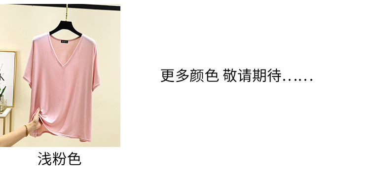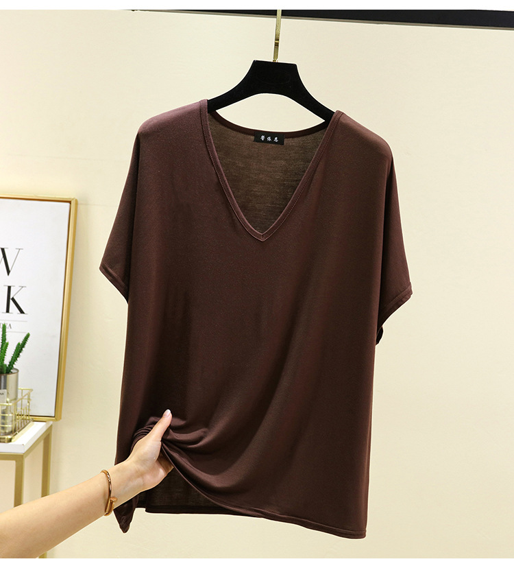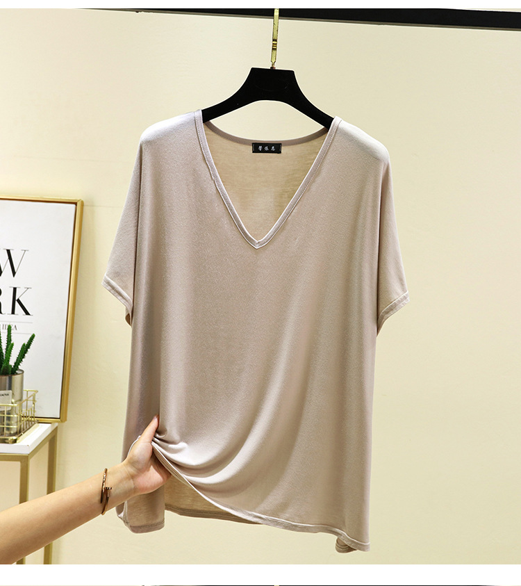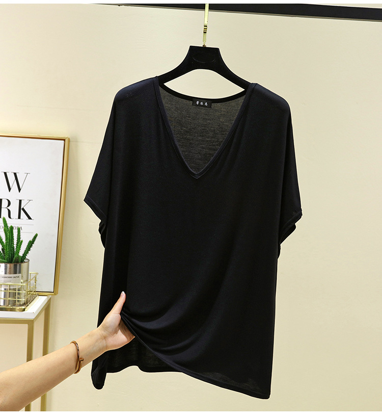 모달 V 넥 짧은 소매 최고 여성 여름 얇은 시원한 느낌베이스 셔츠 플러스 사이즈 느슨한 통통녀 다재다능한면 티셔츠