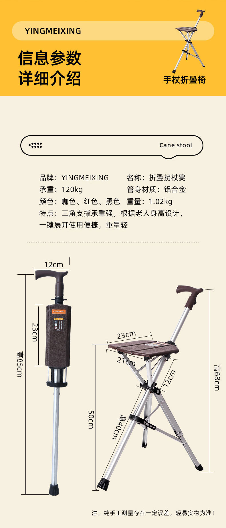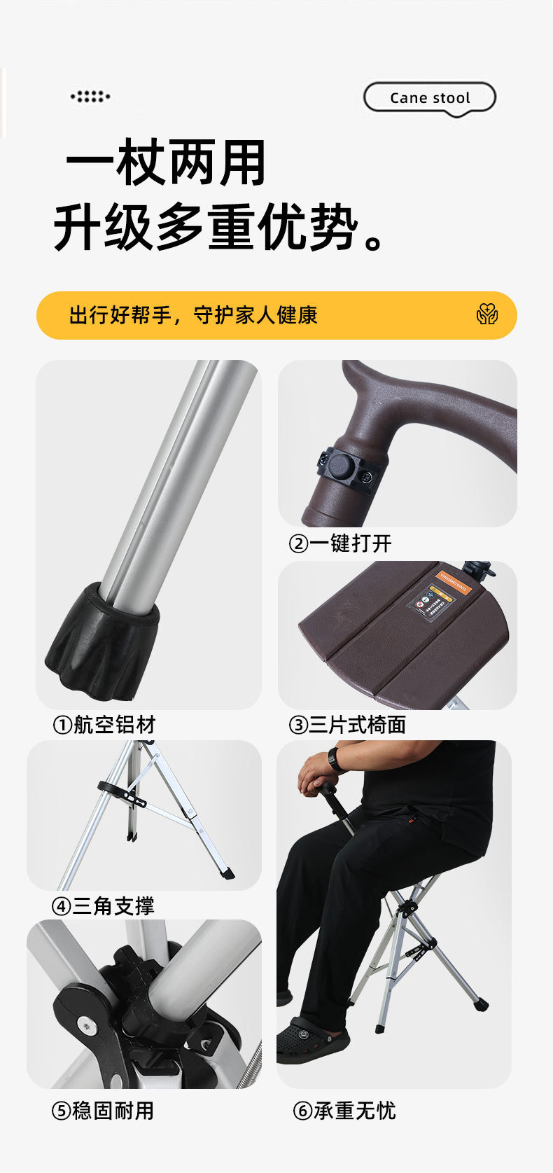 • 수동 원클릭 확장 [갈색 알루미늄 합금 지팡이 스툴]