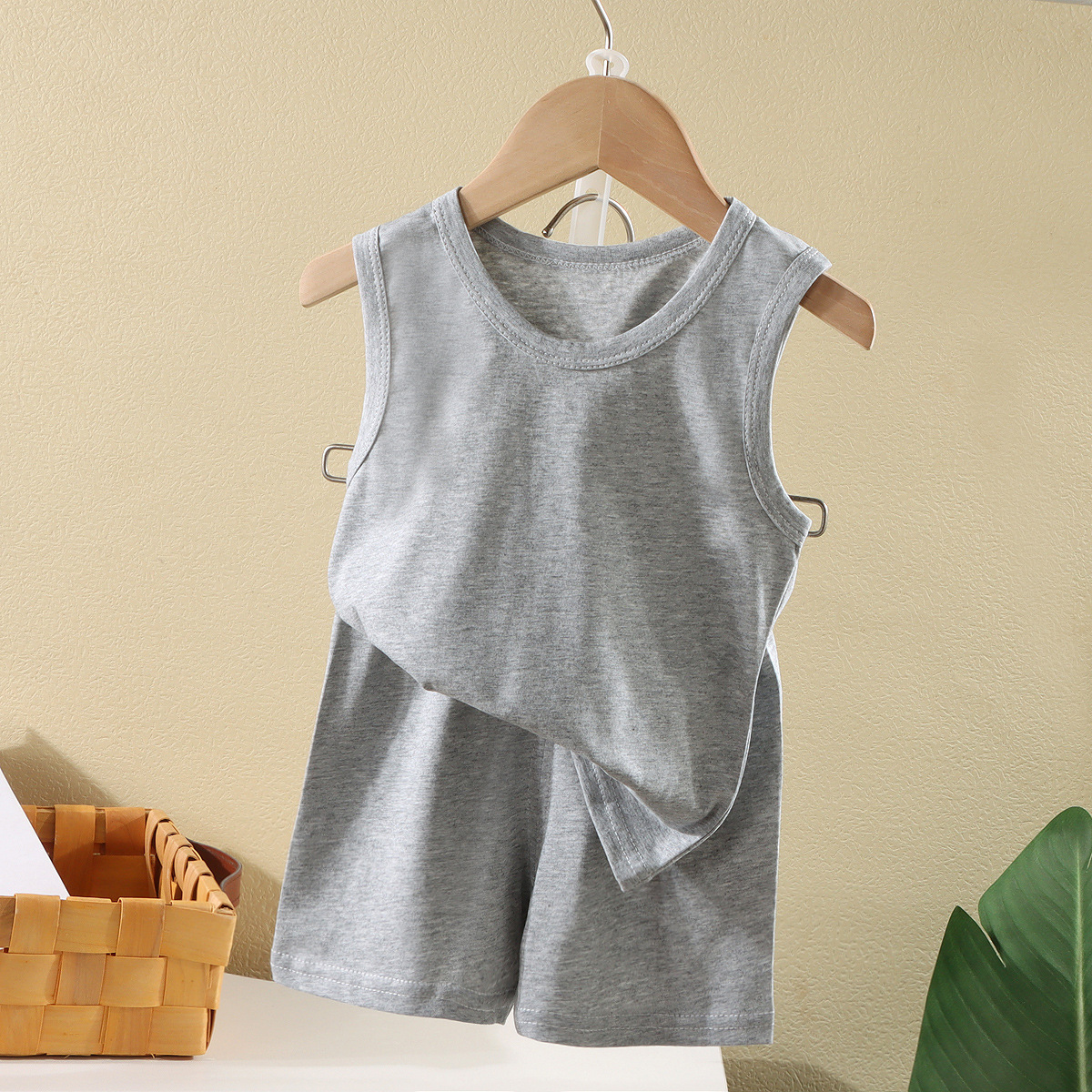 여름 어린이 조끼 세트 새로운 면 줄무늬 컬러 블록 세트 소년 소녀 캐주얼 통기성 민소매 세트
