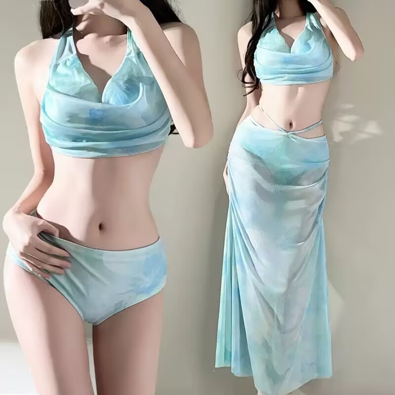 수영복 여성용 스플릿 3 피스 세트 작은 신선한 타이 염색 달콤한 해변 온천 섹시한 작은 가슴 뜨거운 봄 수영복스토어 가기