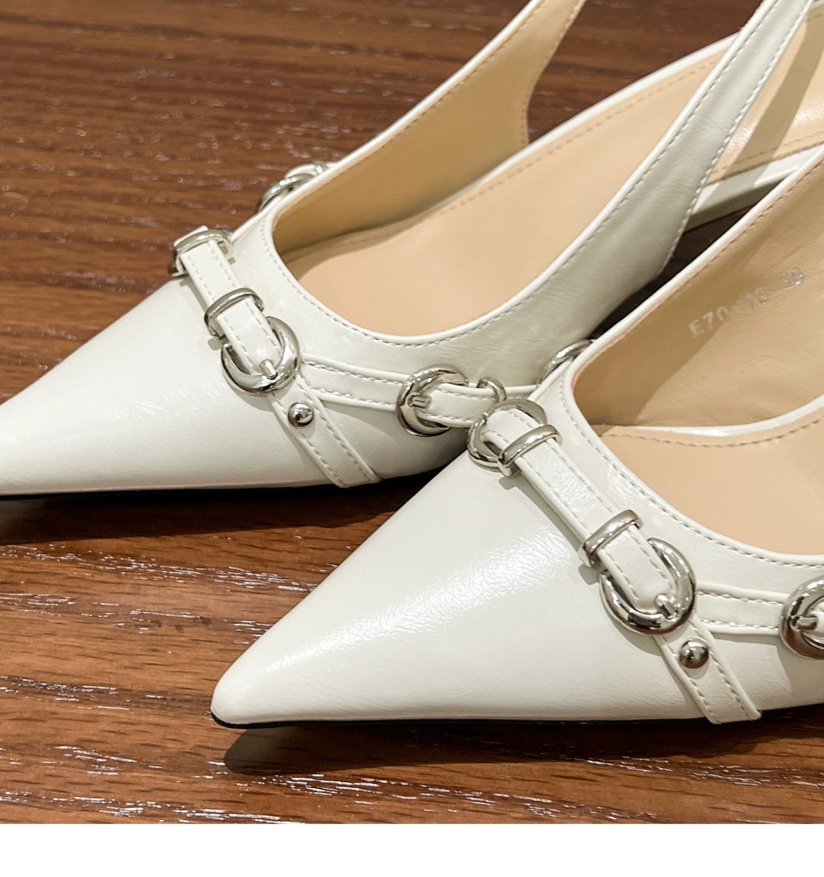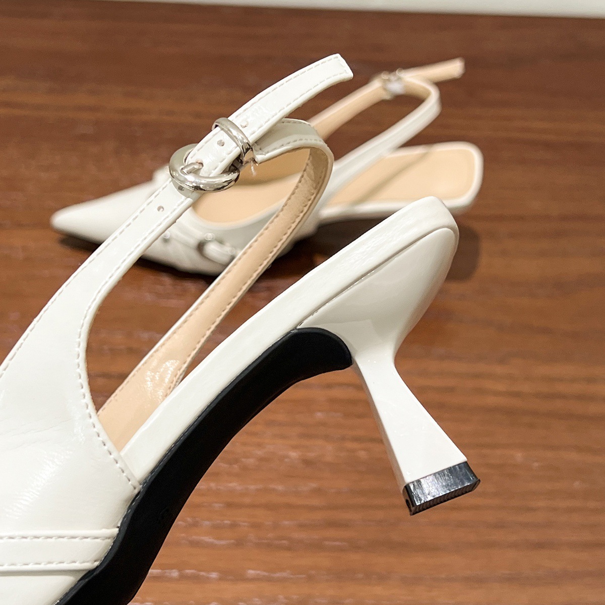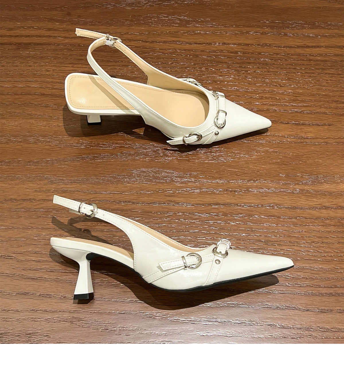 유행 감각! 흰색 뾰족한 버클 스틸레토 힐 신발 여성용 봄 빈 샌들스토어 가기
