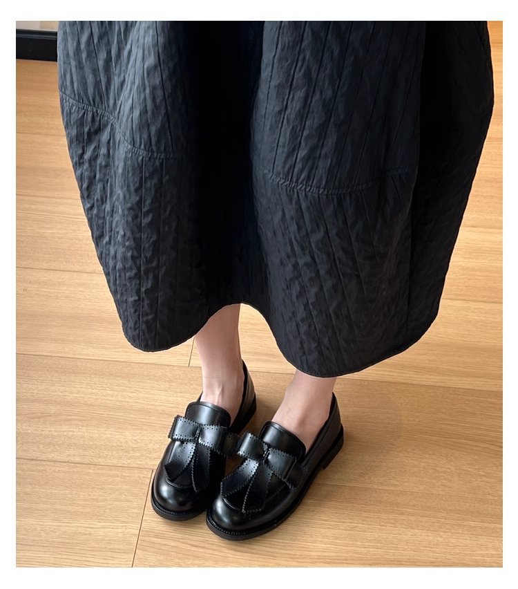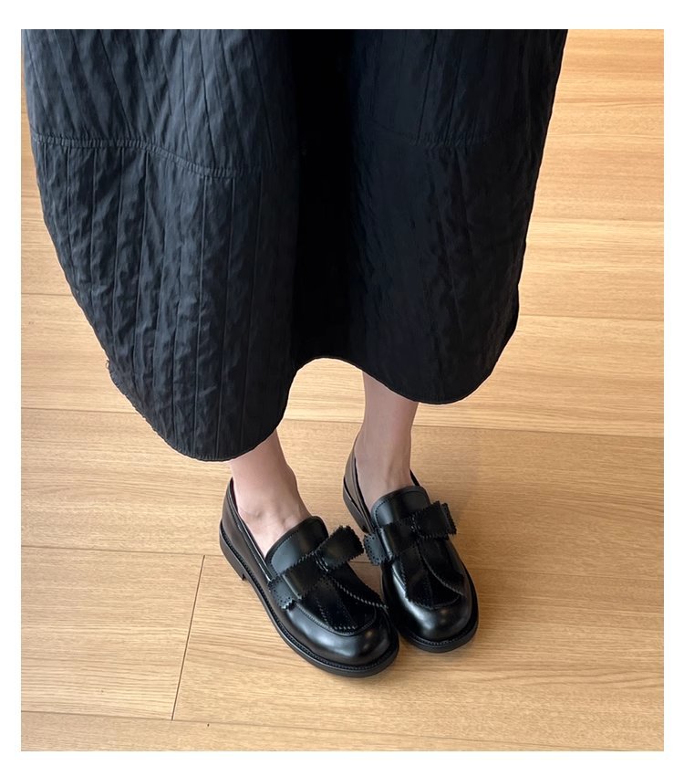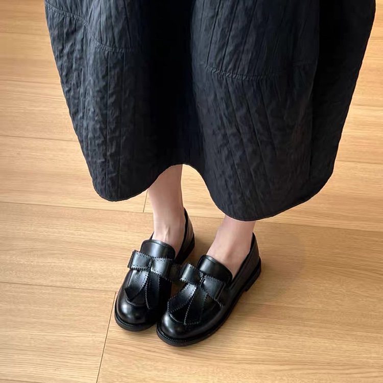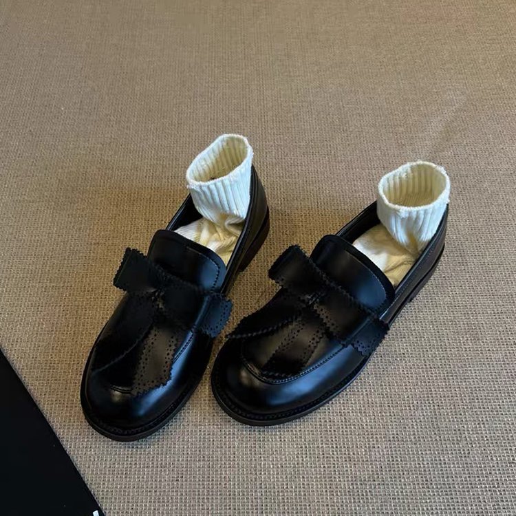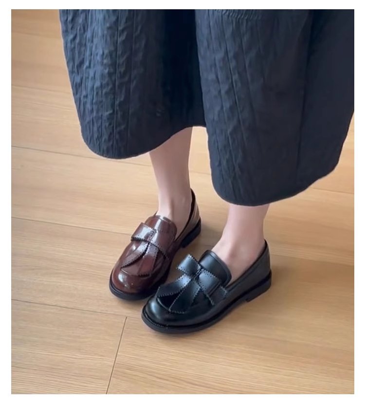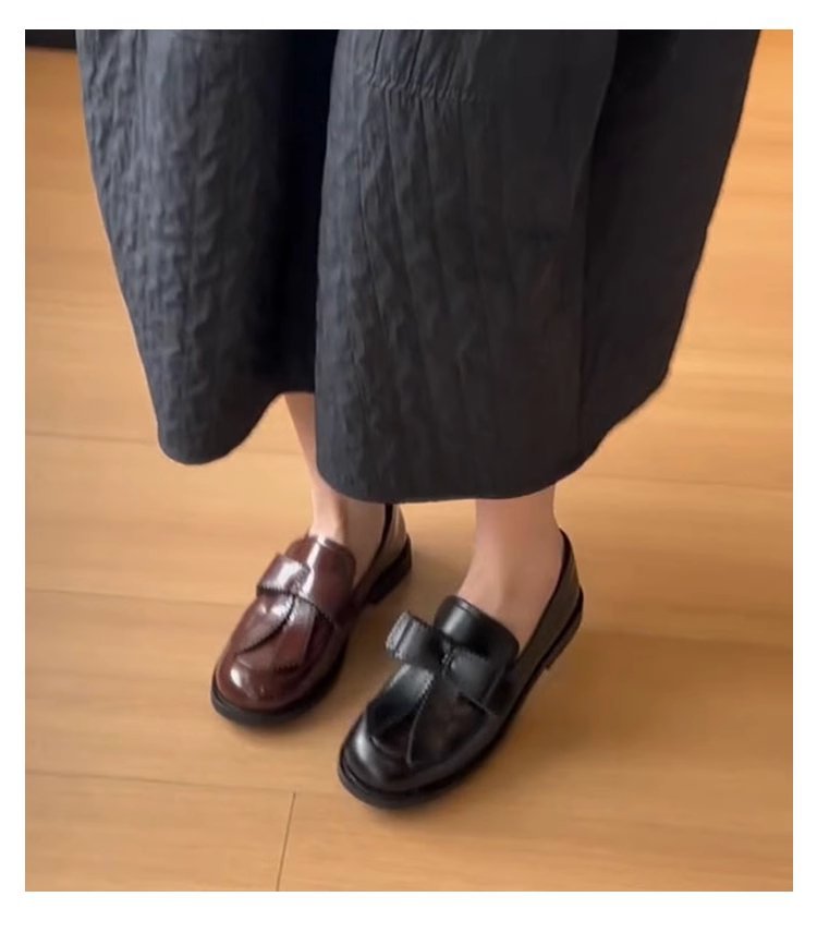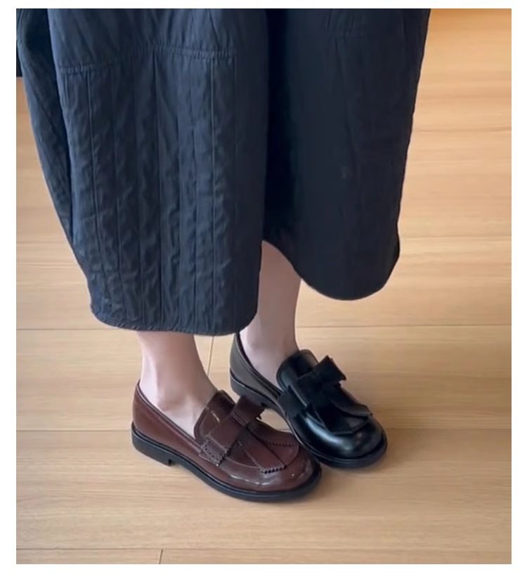 여성용 리본 영국풍 로퍼 2026 봄 신상 슬립온 레트로 스쿨 스타일 로우힐 가죽 슈즈스토어 가기