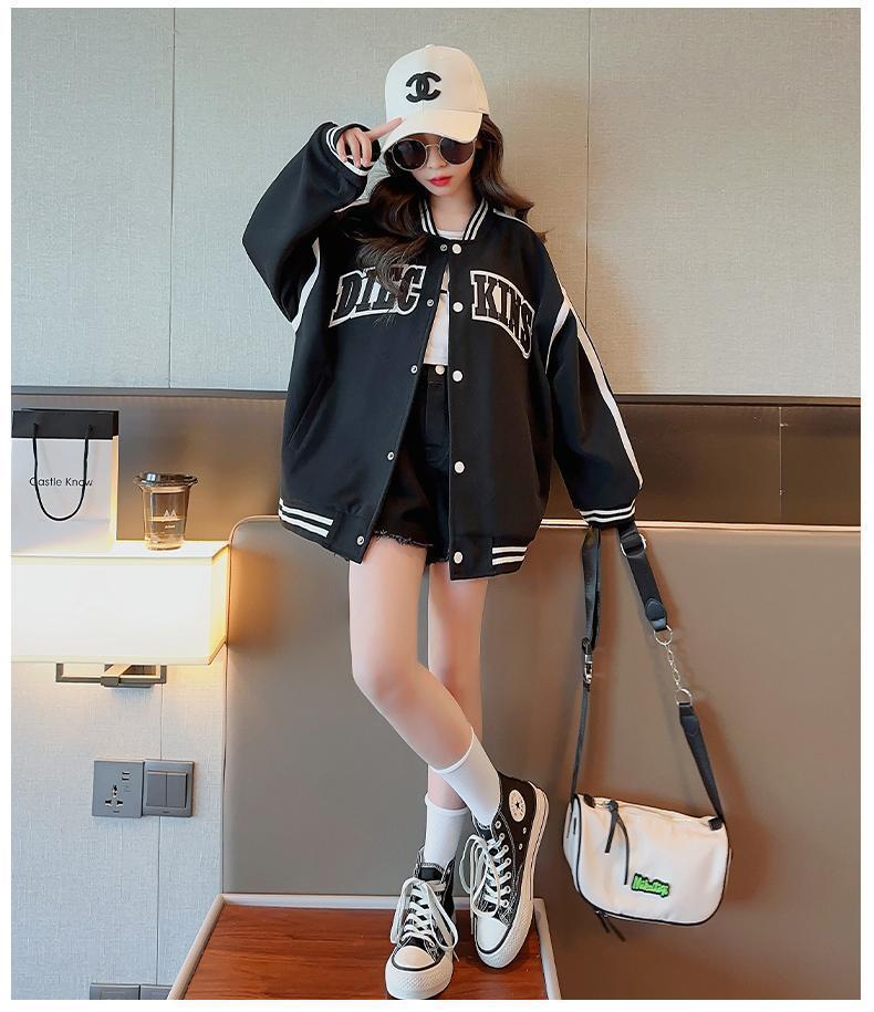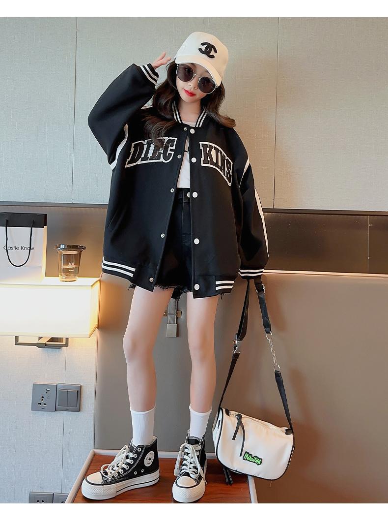 소녀 코트 봄과 가을 2025 새로운 서양식 어린이 봄 의류 유행 인터넷-유명한 재킷 큰 어린이 캐주얼 야구 옷스토어 가기