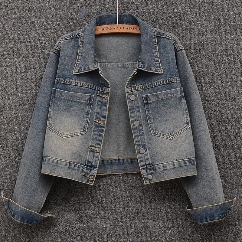 2025 년 봄과 가을 새로운 대형 포켓 복고풍 오래된 데님 코트 여성용 유행 짧은 느슨한 재킷 탑스토어 가기